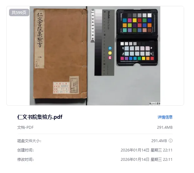 百度网盘「8040_仁文书院集验方」