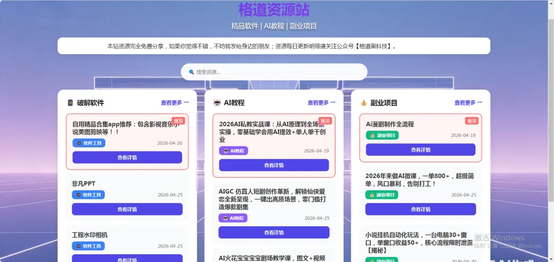 🔥 格道黑科技・每日资源更新