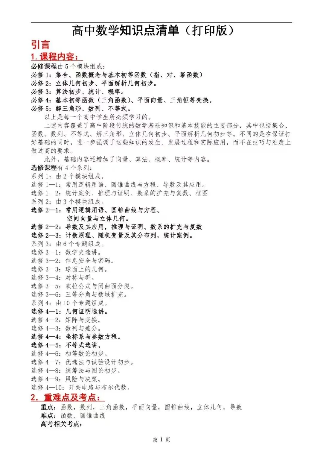 所以今天给大家分享的是【高中数学基础知识点梳理(必+选修、PDF版)(新高考适用)】,高中三年这一份就够了,希望能帮助到大家~