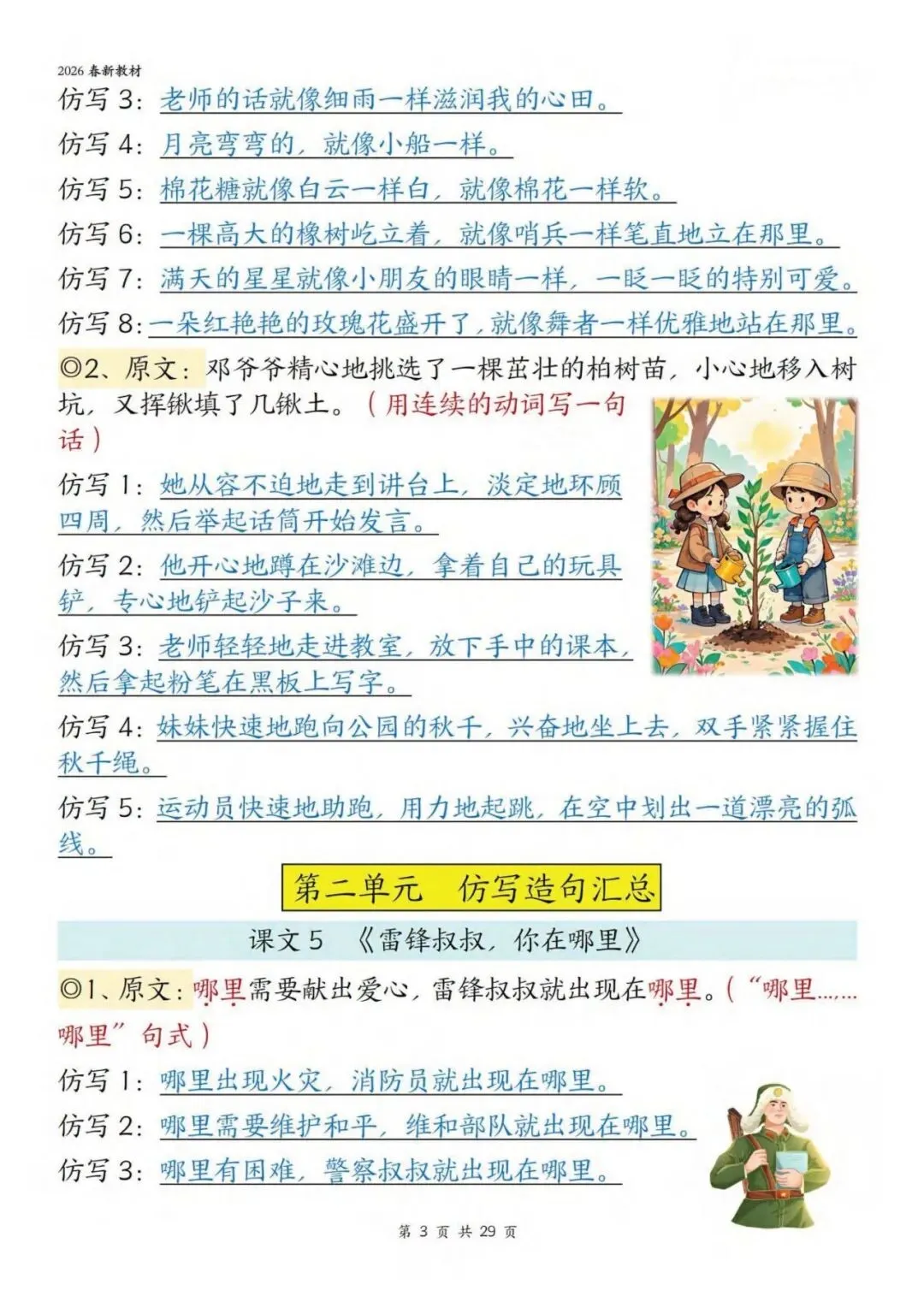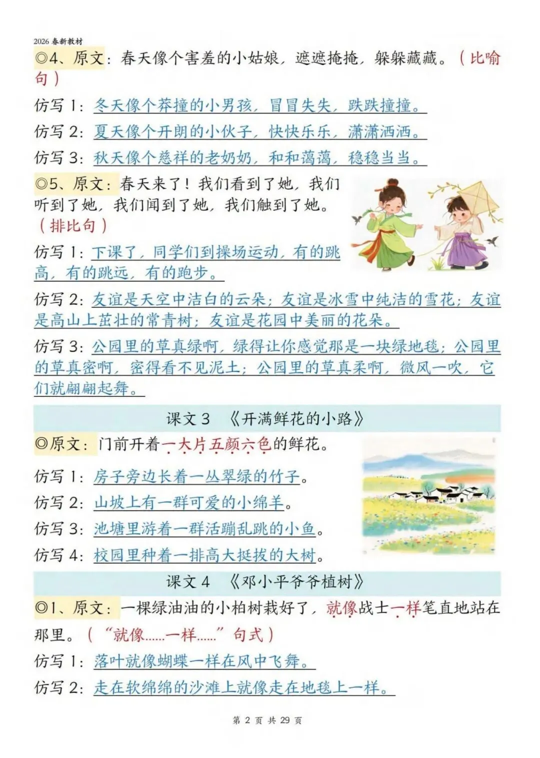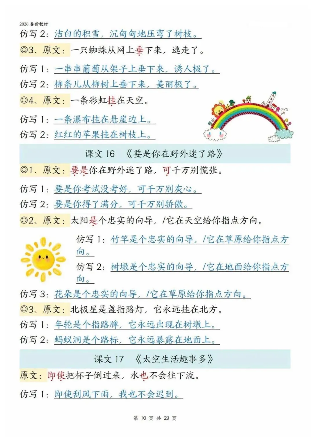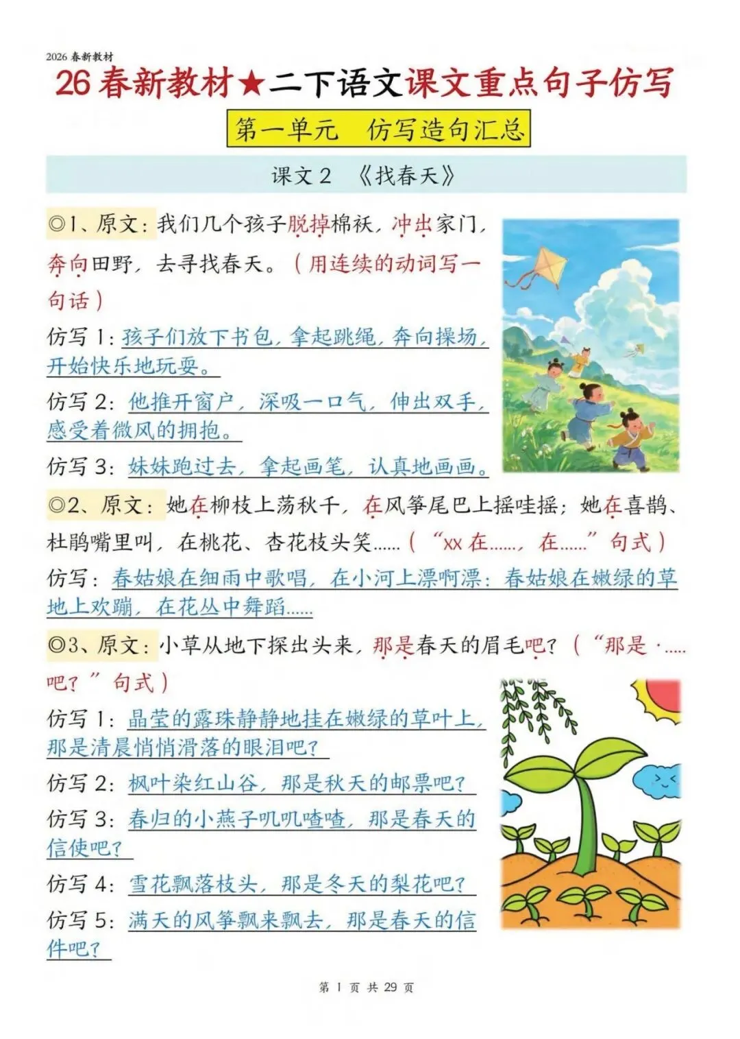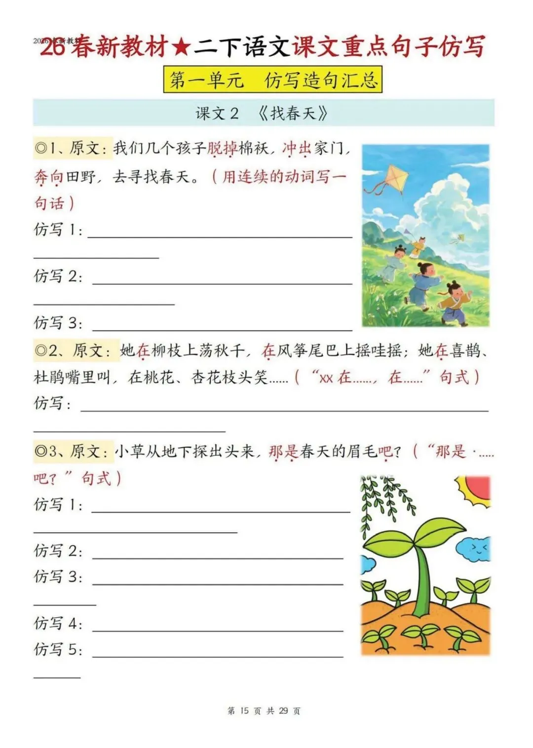 今天分享的是:二年级下册语文课文重点句子仿写。这套句子仿写练习按照语文课本顺序分单元汇总练习,在帮助孩子进行课文学习的同时还帮助孩子学习了句子仿写,是非常不错的配套练习材料,需要的家长可以按照文末方式领取下载打印,根据孩子的学习进度,用起来吧!