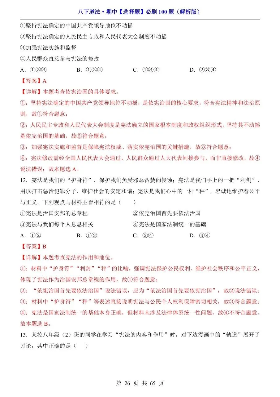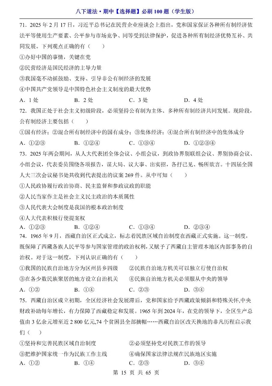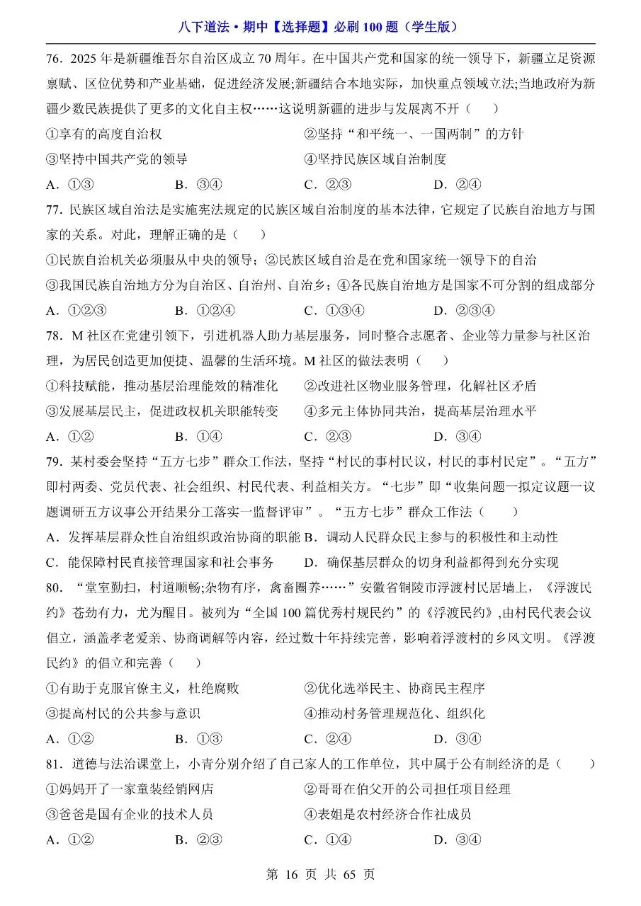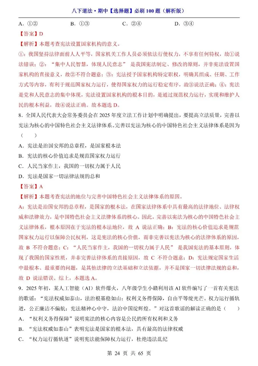 2026年最新版八年级下册道法期中复习选择题必刷100道,有完整可打印,学霸学习好帮手,建议家长打印,学霸人手一份!点击蓝字关注我们!2026年最新版八年级下册道法期中复习选择题必刷100道,有完整电子版可打印,学霸学习好帮手,建议家长打印,学霸人手一份!