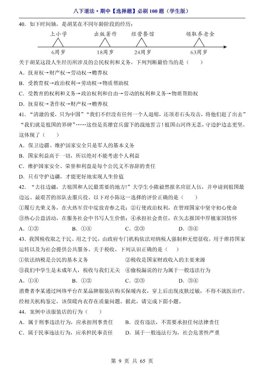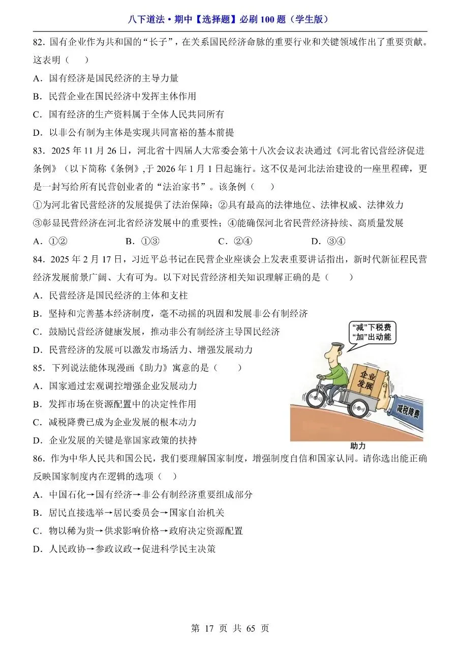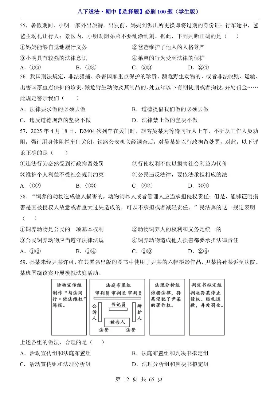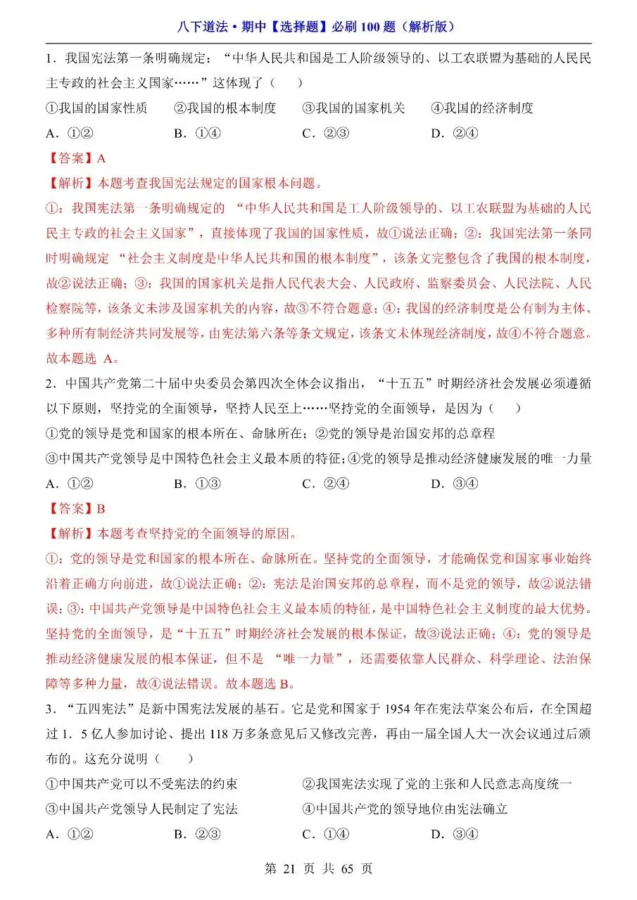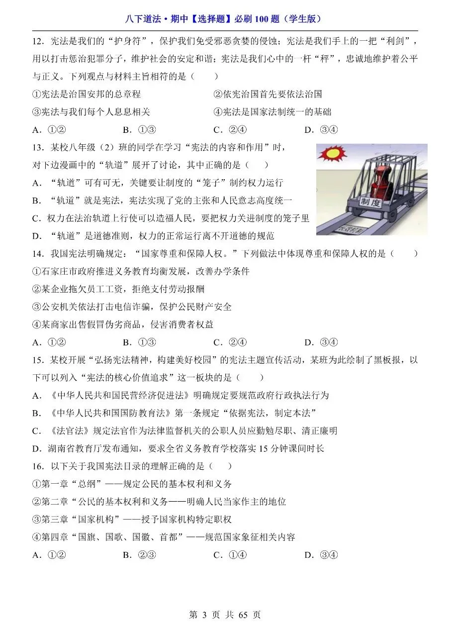 2026年最新版八年级下册道法期中复习选择题必刷100道,有完整可打印,学霸学习好帮手,建议家长打印,学霸人手一份!点击蓝字关注我们!2026年最新版八年级下册道法期中复习选择题必刷100道,有完整电子版可打印,学霸学习好帮手,建议家长打印,学霸人手一份!