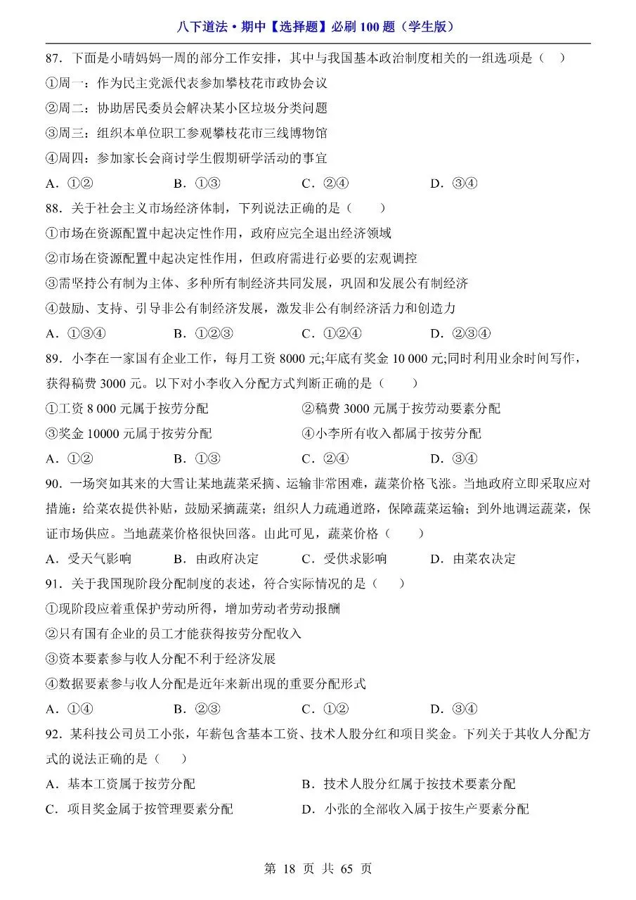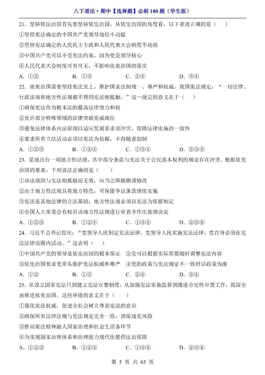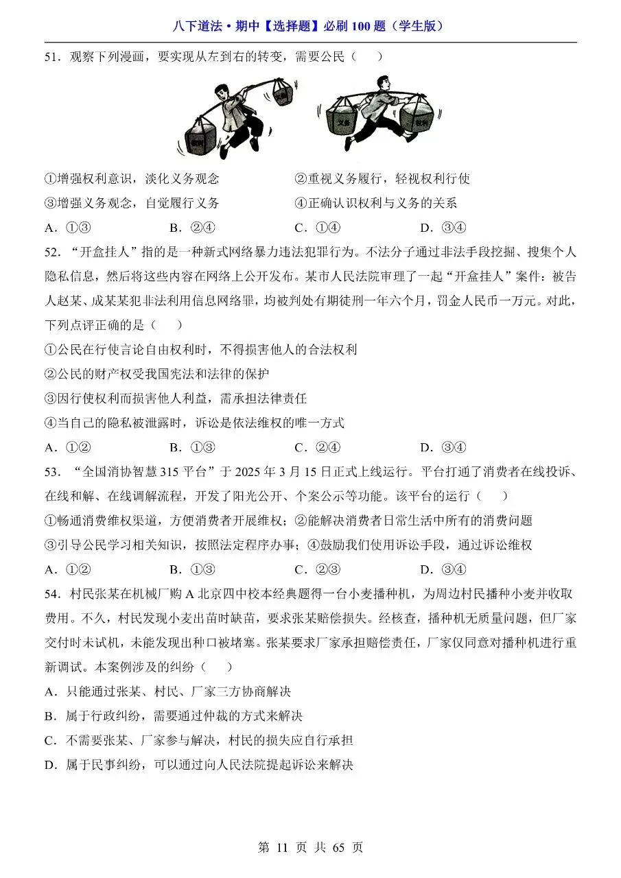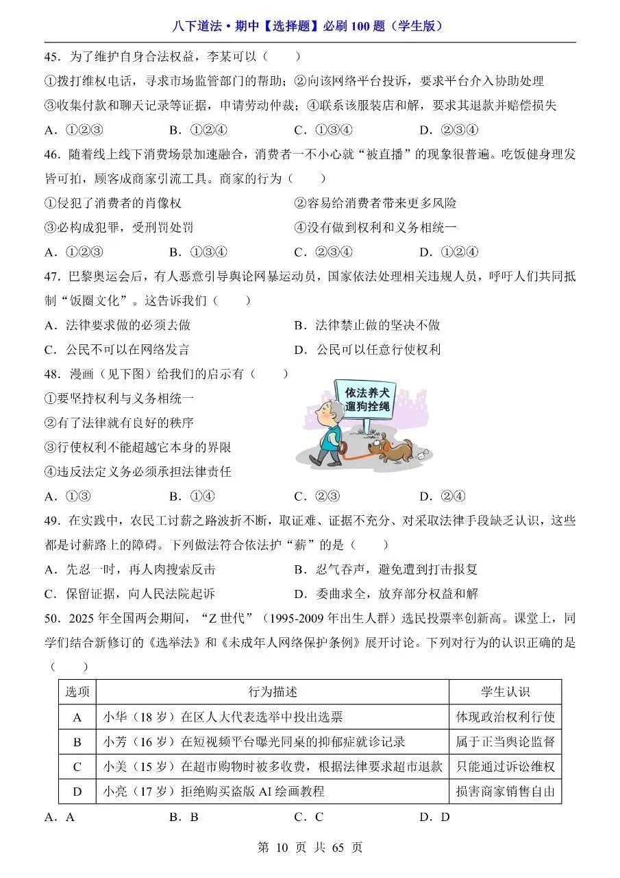 2026年最新版八年级下册道法期中复习选择题必刷100道,有完整可打印,学霸学习好帮手,建议家长打印,学霸人手一份!点击蓝字关注我们!2026年最新版八年级下册道法期中复习选择题必刷100道,有完整电子版可打印,学霸学习好帮手,建议家长打印,学霸人手一份!