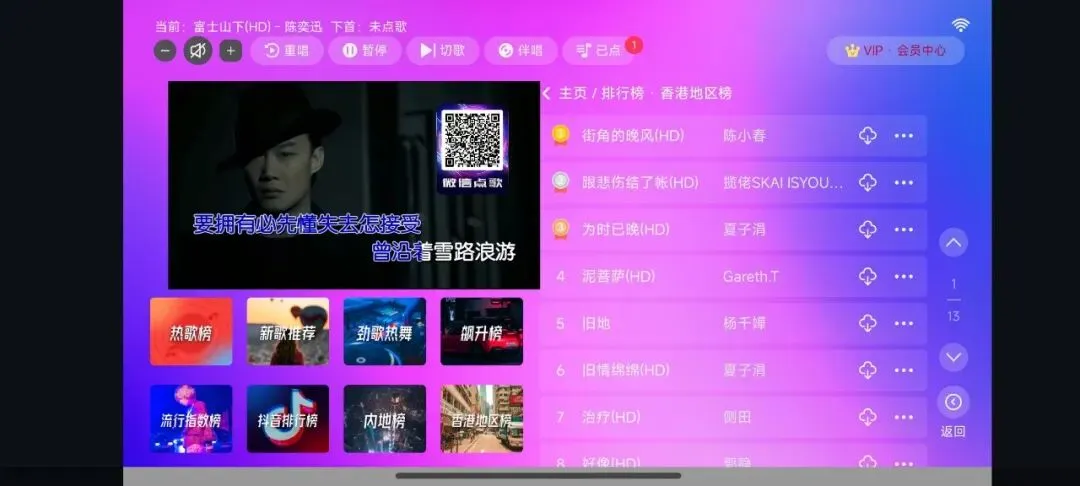 软件的主界面如下,整体非常的干净整洁,无需那些繁琐的登陆,打开就能直接开唱,没有什么乱七八糟的限制。最让我满意的就是它的曲库,不管是最近刚出的流行金曲,还是那些压箱底的老歌,甚至是有些比较偏门的歌,基本都能搜到,这点确实很牛批,想唱就唱,不用来回切平台。