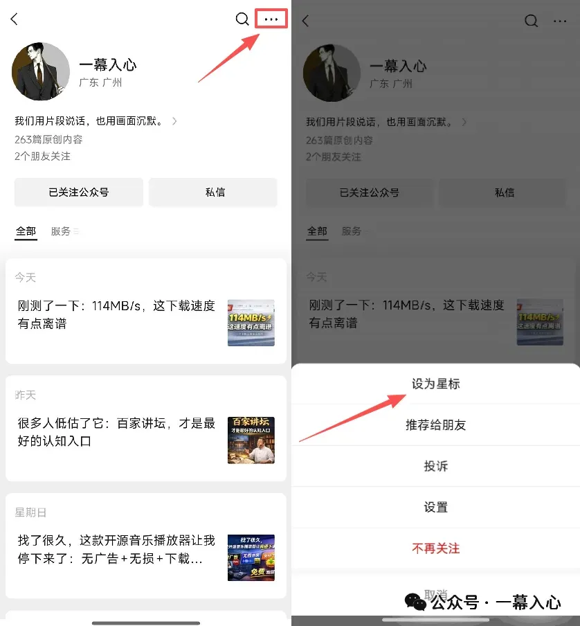 小伙伴们注意:一幕每天都定时更新,但因为信息流乱序,不少人还是错过了干货!一幕建议大家把本公众号置顶(设为星标★),以便及时看到推送,方法如下图: