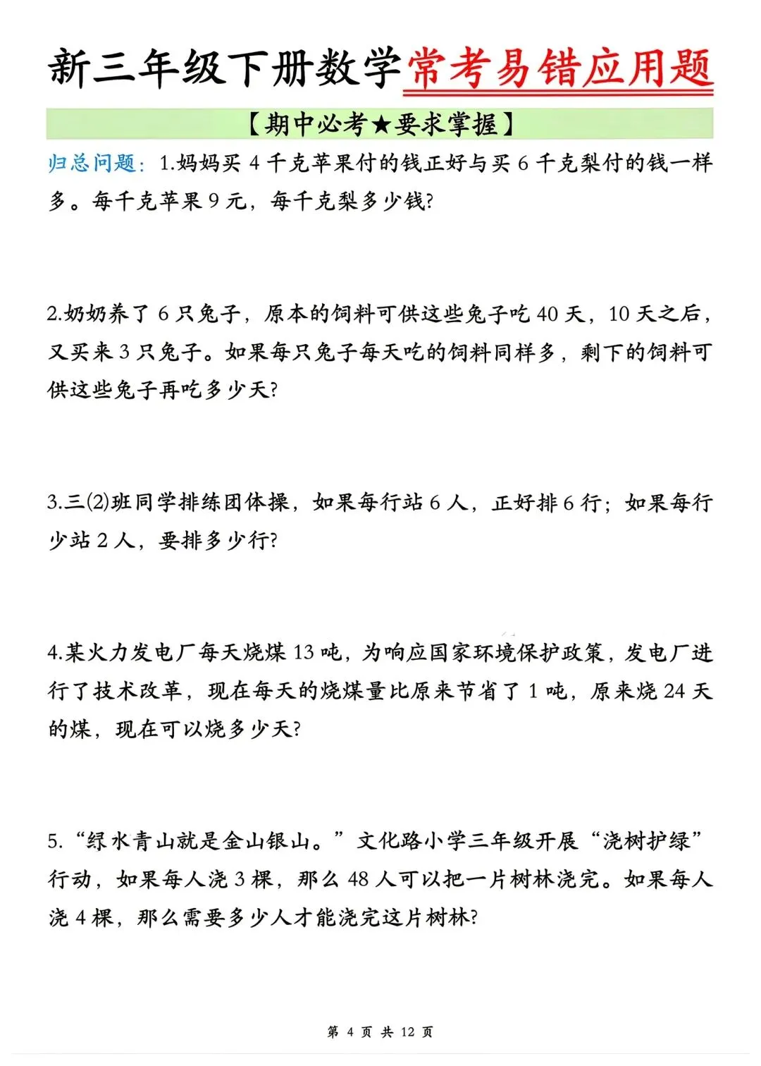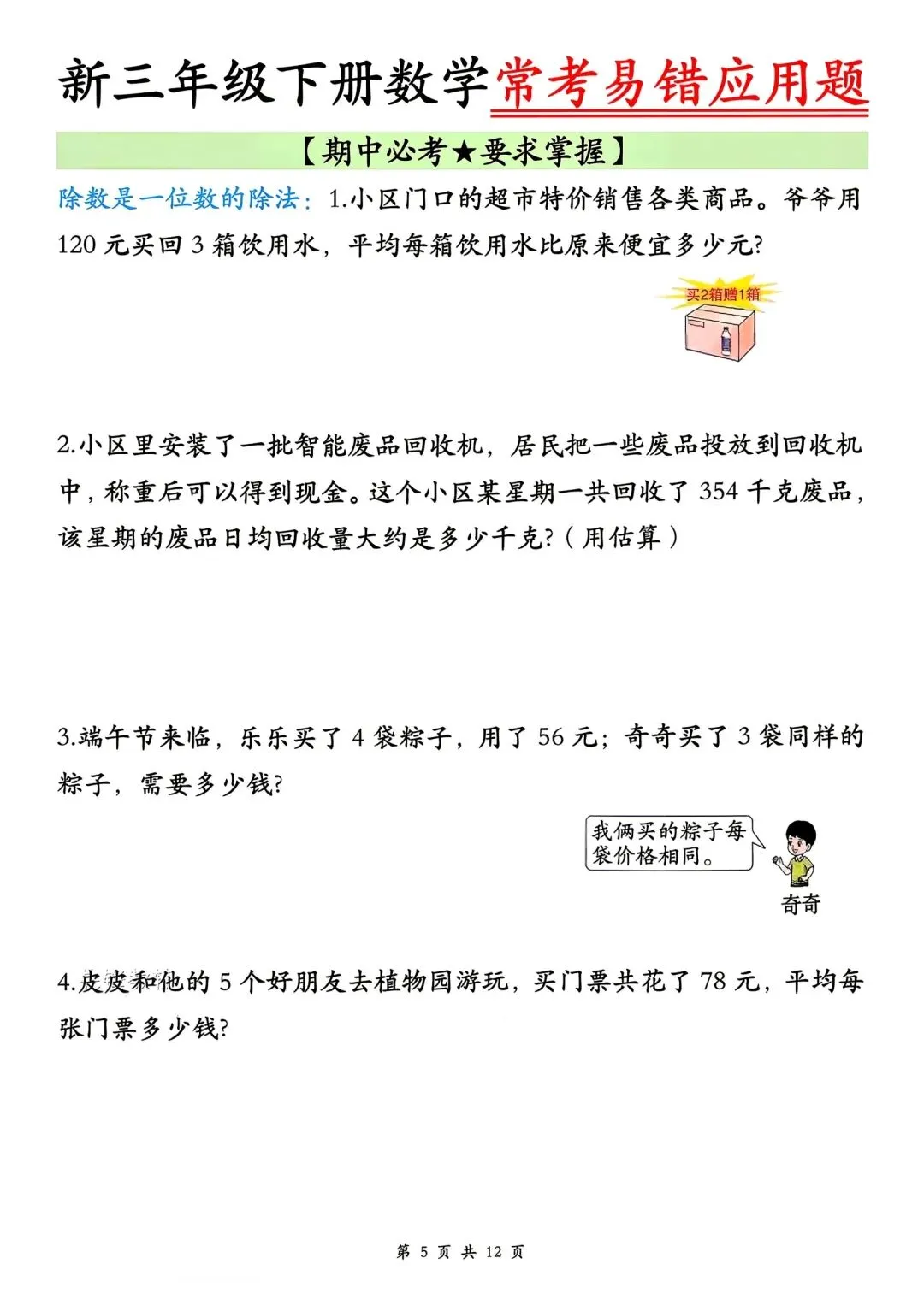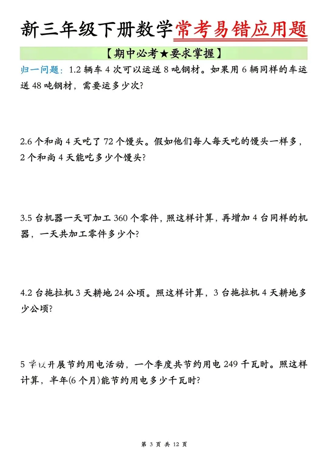 🌈今日分享的学习资料是:2026年春三年级下册数学通用版《期中考试·常考易错应用题》专项训练(含答案),高清完整电子版可打印。这份资料整理了期中常考易错应用题,可以打印出来让孩子专项练一练,提升各类题型答题思路和效率,助力考试取得好成绩~