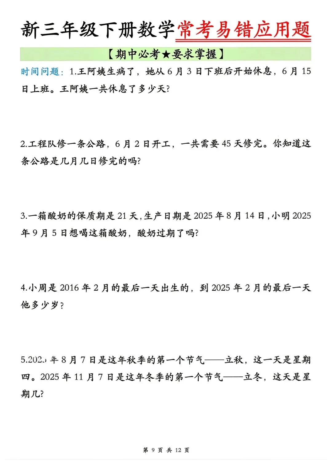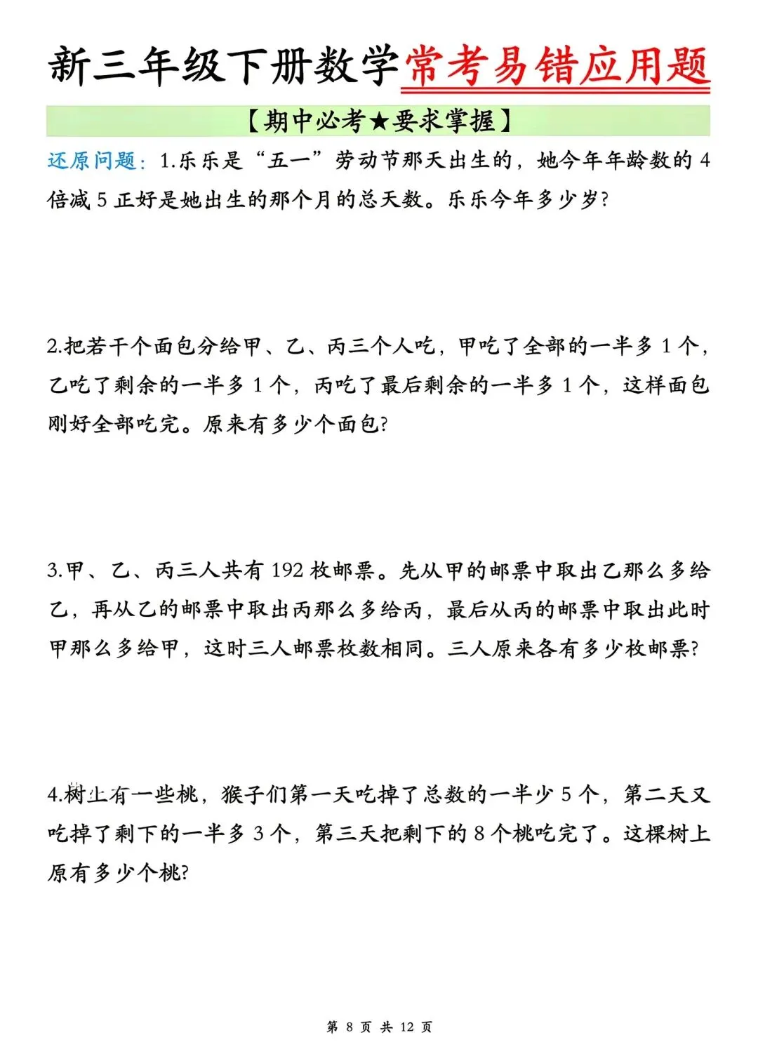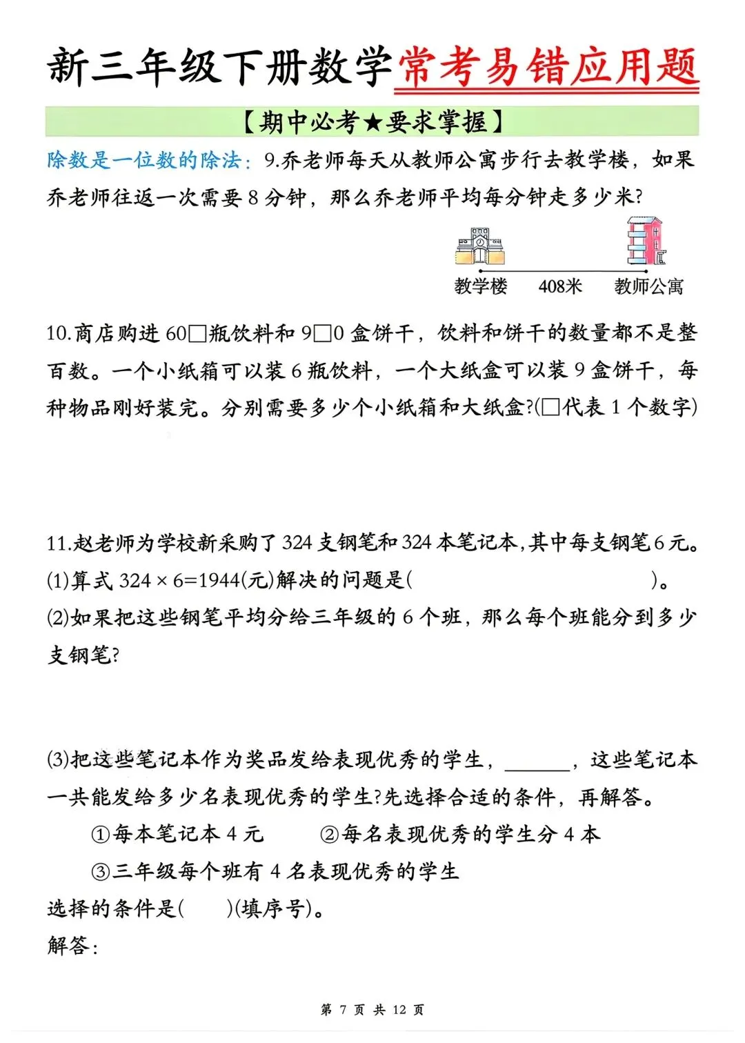 🌈今日分享的学习资料是:2026年春三年级下册数学通用版《期中考试·常考易错应用题》专项训练(含答案),高清完整电子版可打印。这份资料整理了期中常考易错应用题,可以打印出来让孩子专项练一练,提升各类题型答题思路和效率,助力考试取得好成绩~