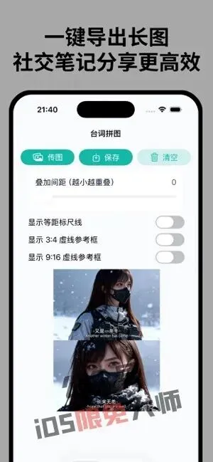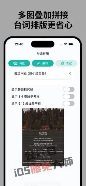 【台词拼接 - 电影字幕拼图工具】一款电影台词和字幕拼接工具,支持多图连续拼接、自由调节间距与分隔线样式,并提供3:4和9:16比例参考框,轻松生成高清长图。