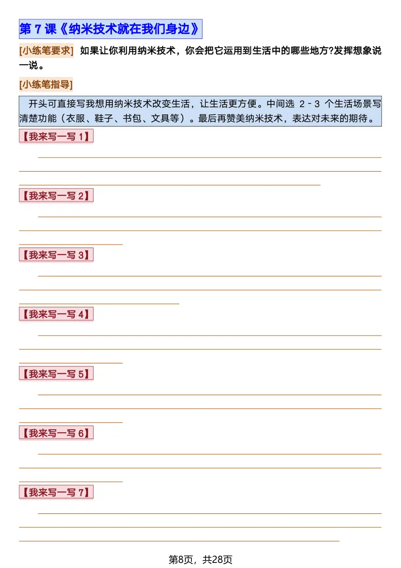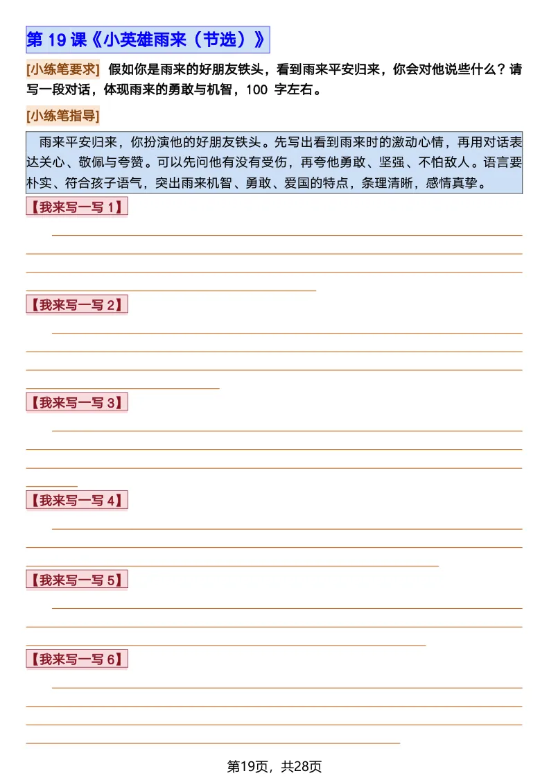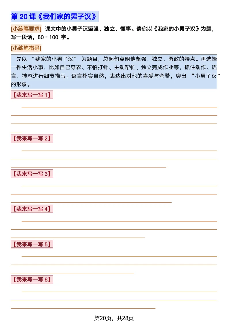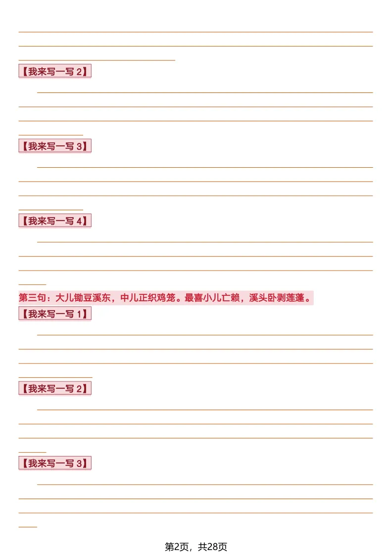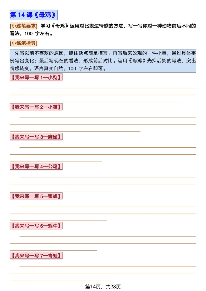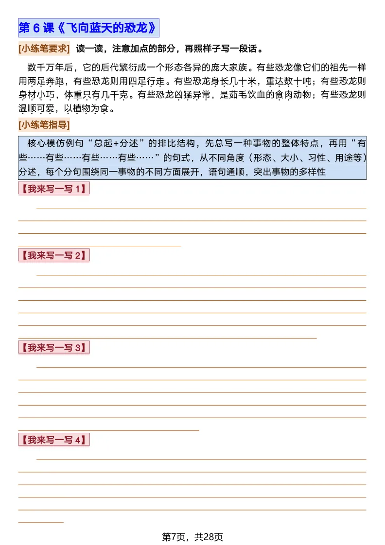26春部编版《四年级语文下册全册·课文课后小练笔仿写句子》(含打印版)具体看完整PDF文件(温馨提示:文末有电子版下载方式)文件名四年级语文下册全册课后仿写小练笔完整pdf 28 页△因篇幅有限,只展示部分资料截图△复制上方文件名;再这个小程序首页搜索获取↓↓↓好了,以上就是今天的分享。如果对您有帮助,可以点个关注,我是欣骆学习屋,我们下期再见!