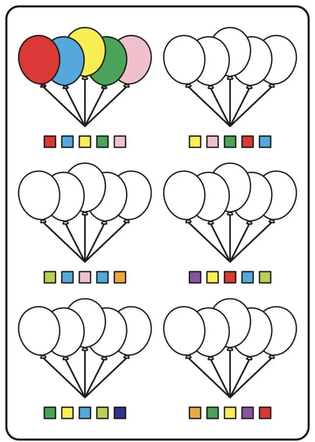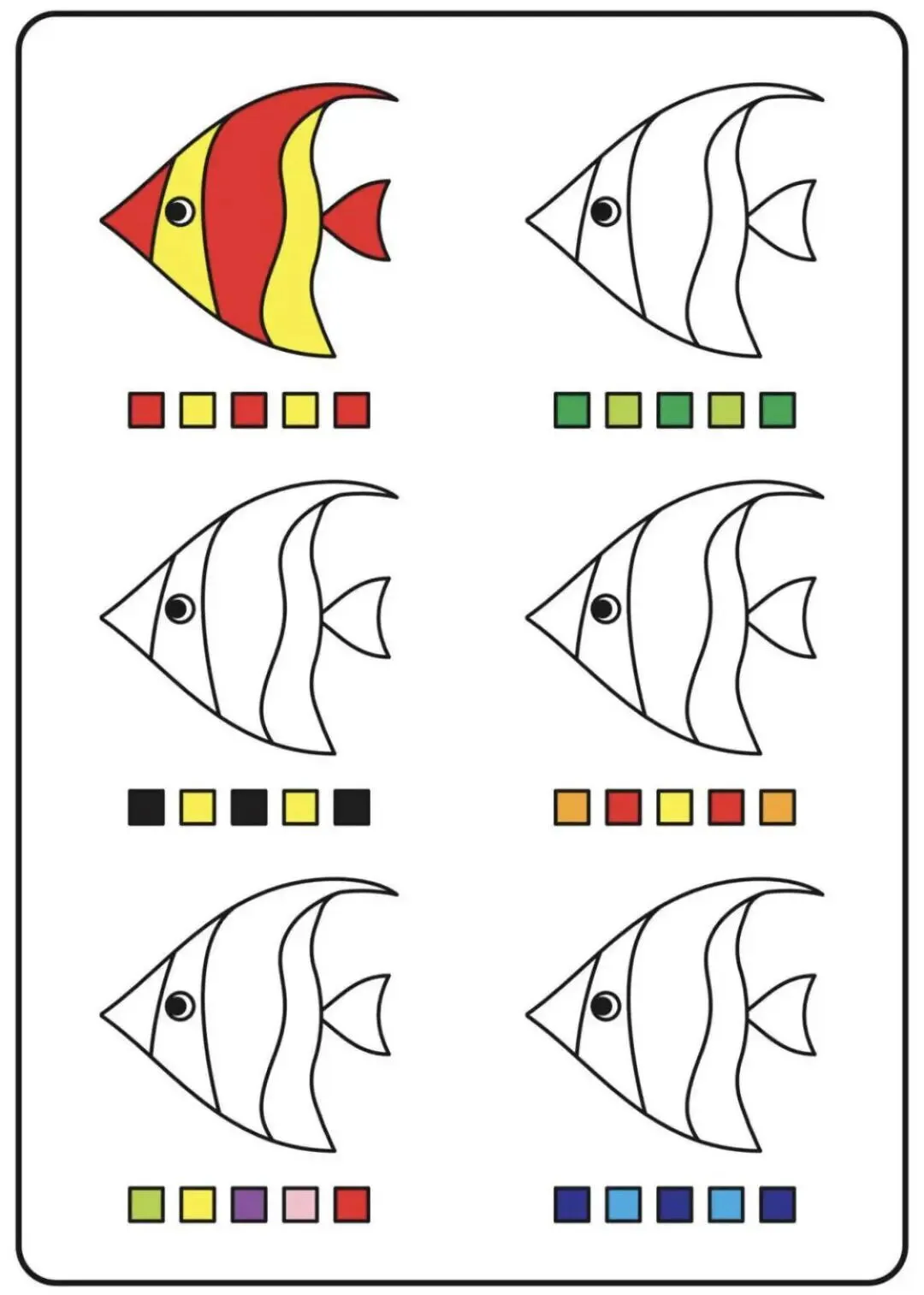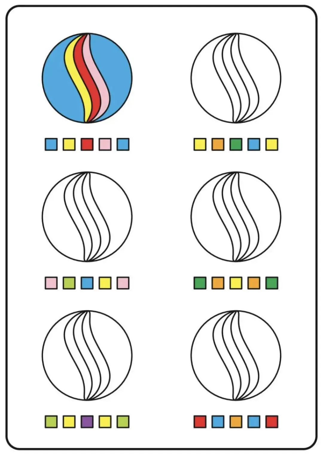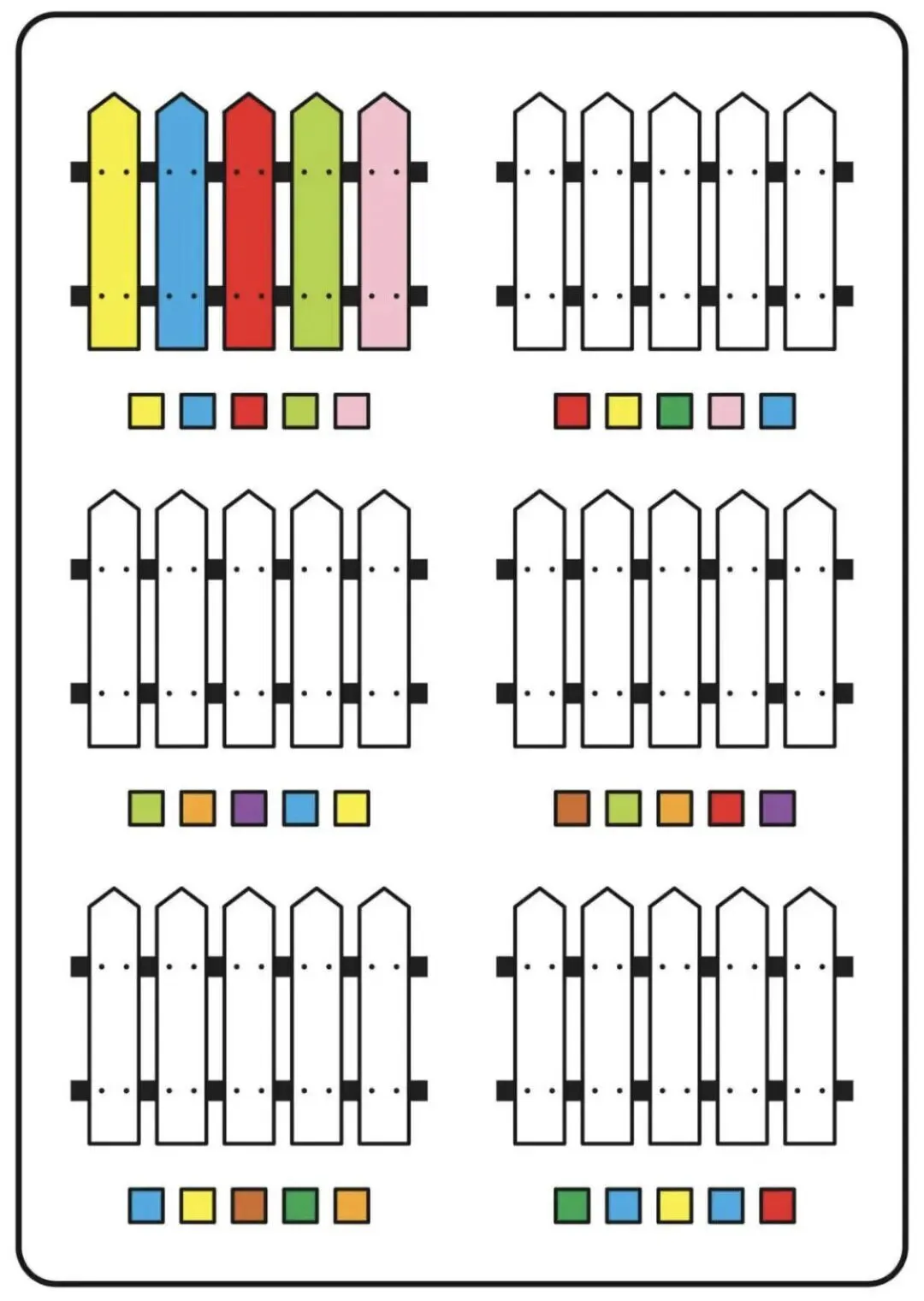 幼儿园小中班益智区认识颜色观察找规律涂色可打印图片