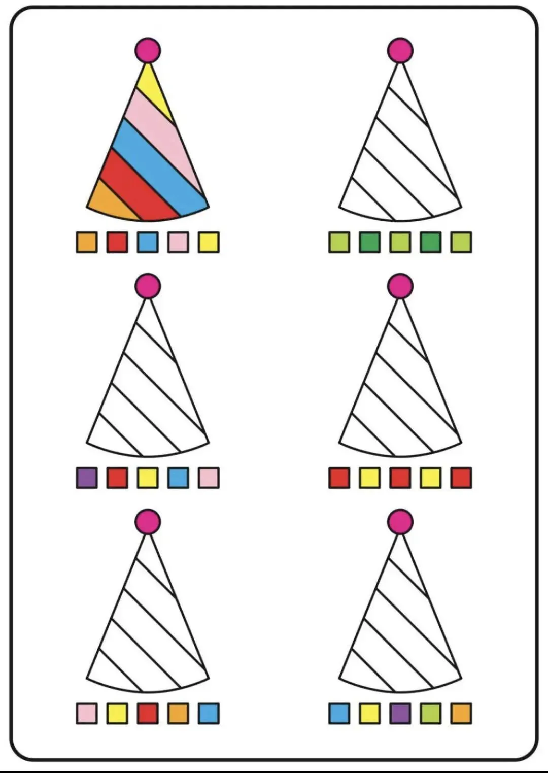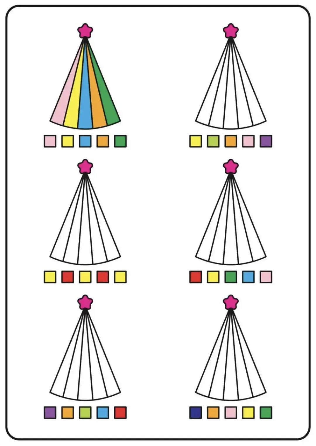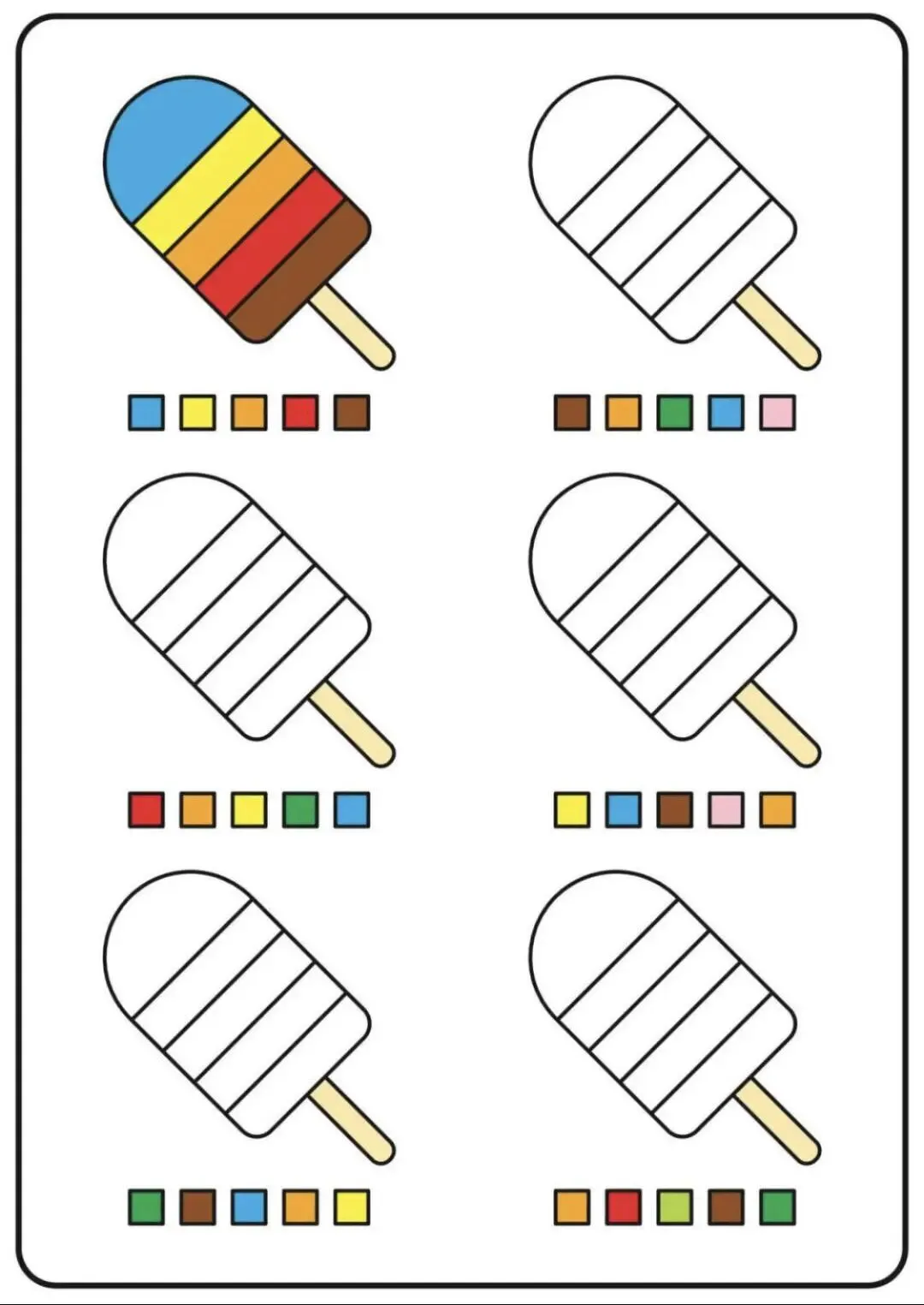 幼儿园小中班益智区认识颜色观察找规律涂色可打印图片