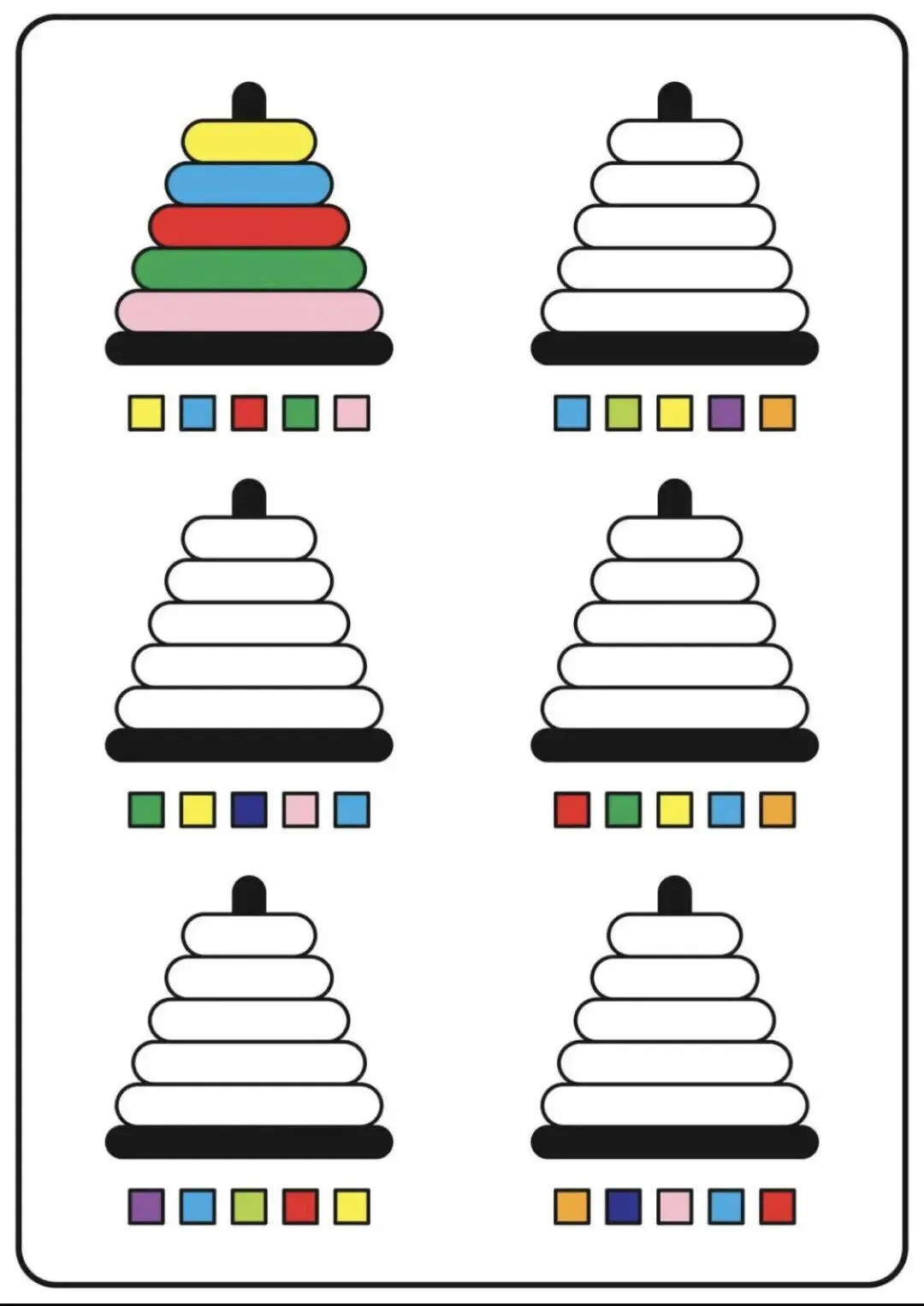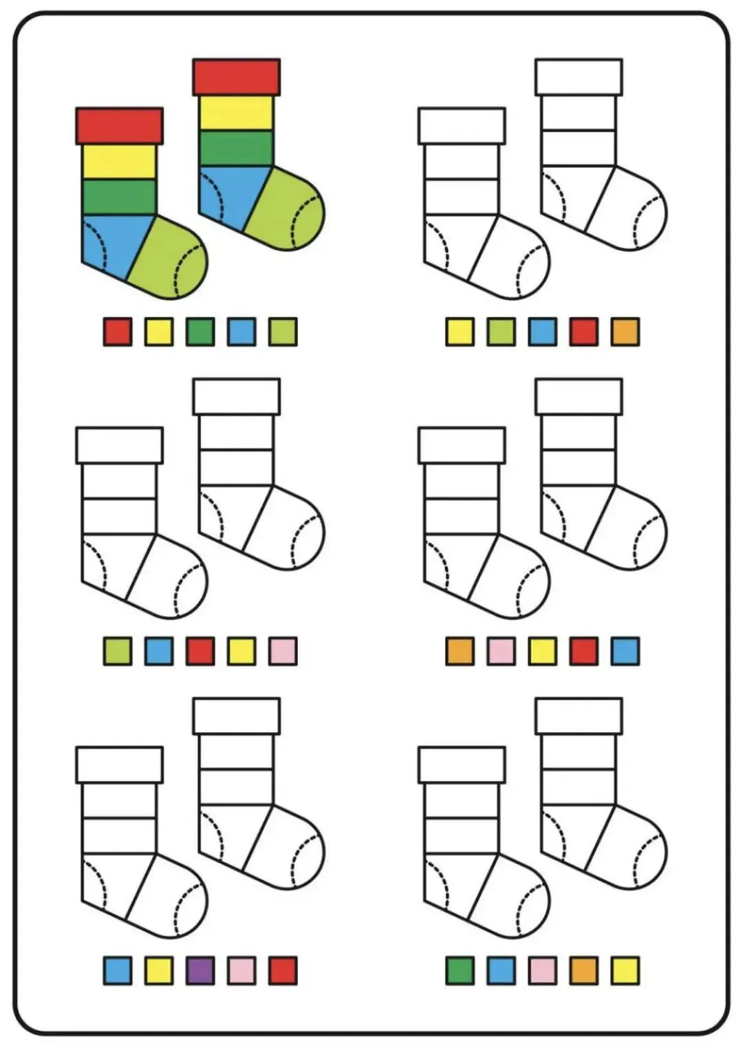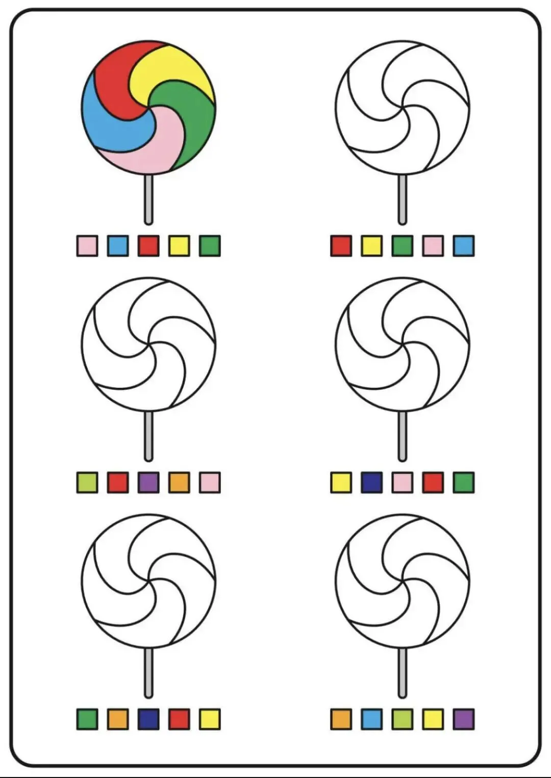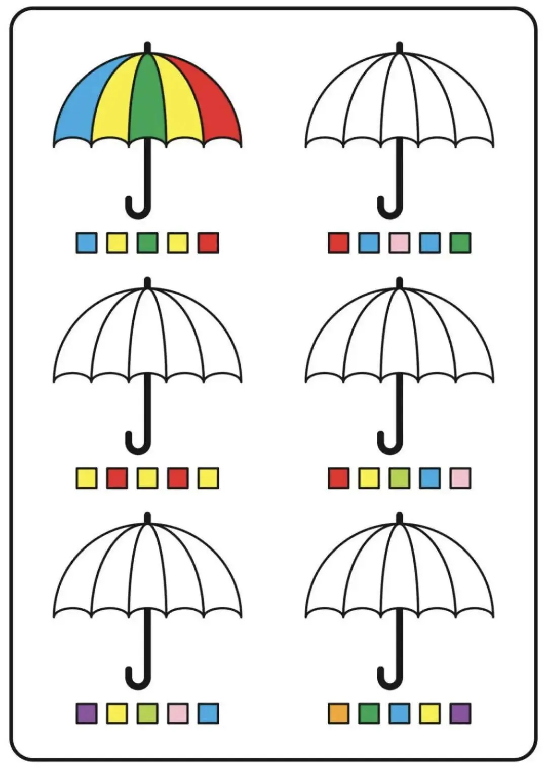 幼儿园小中班益智区认识颜色观察找规律涂色可打印图片