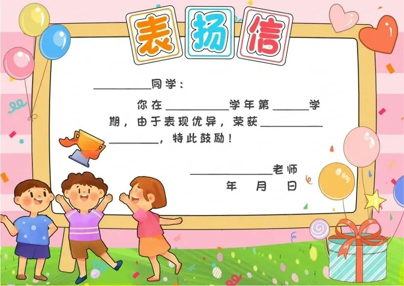 免费分享幼儿园小学生表扬信小奖状模板可修改打印