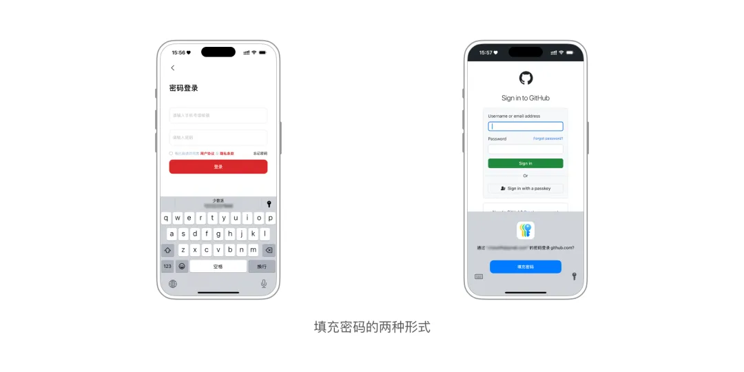 自动填充这个不用多说,Safari 登录时它会自己弹出来问要不要填。关键是它现在不只 Safari,App 里登录也能调。比如打开支付宝或者京东,点登录框,键盘上方会出现一个小钥匙图标,点一下就能从密码库里选。