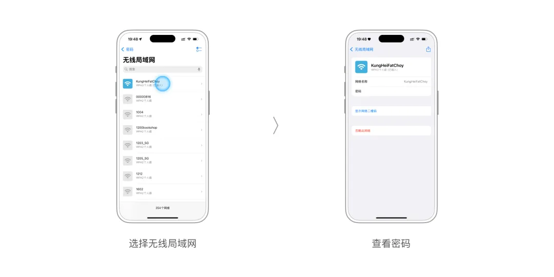 Wi-Fi 密码。你家、公司、咖啡店连过的所有 Wi-Fi 密码都在里面。朋友来家里问密码,你直接打开 App 点一下分享就行,不用再盯着路由器背面念那一串。