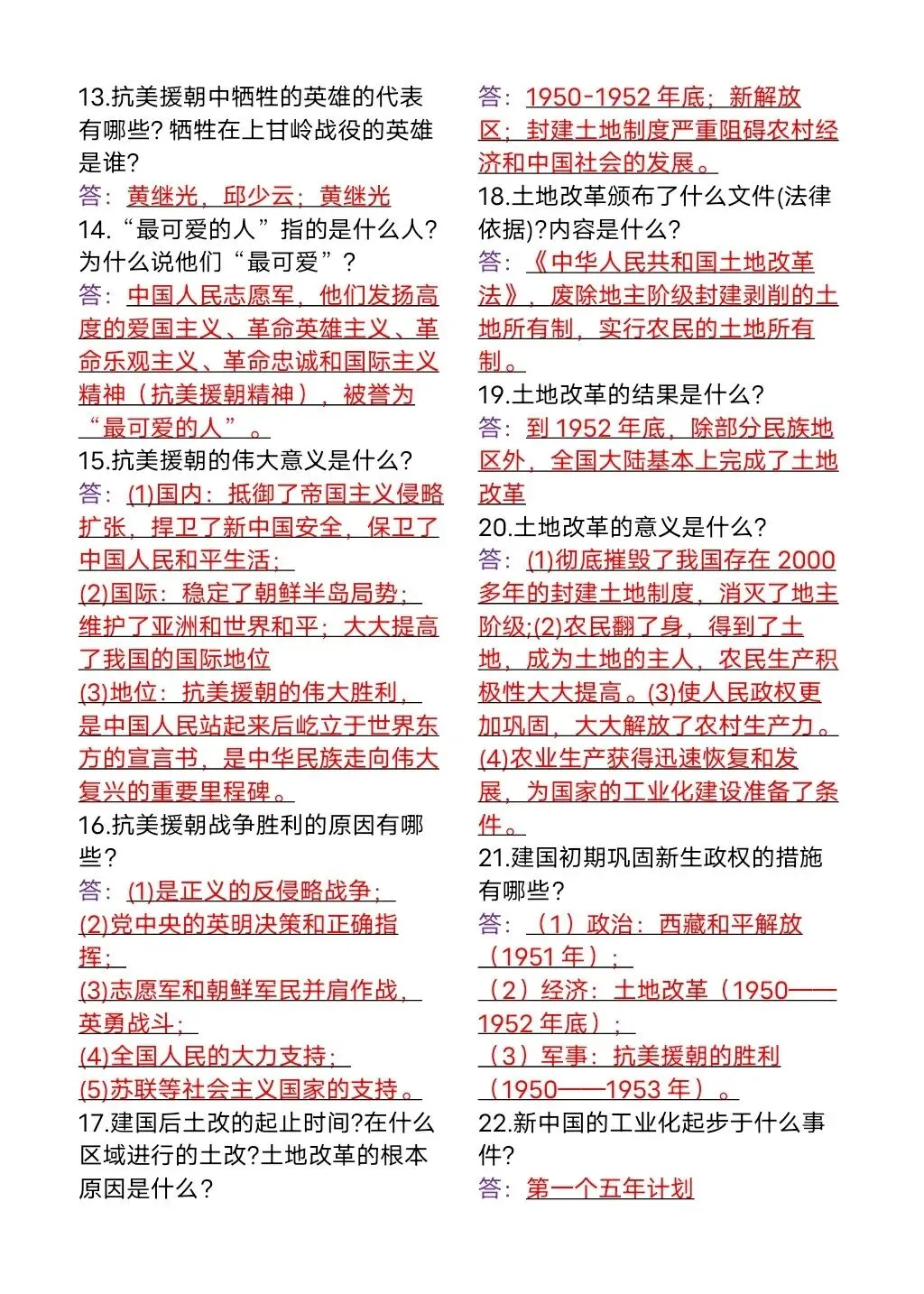 2026年最新版八下历史期中必背问题清单117个,完整电子版可打印,学霸学习好帮手,建议家长打印,学霸人手一份!这份资料特别适合预习和考前冲刺,每天花一点时间,跟着节奏走,基础慢慢打牢,难点逐个突破。不用再盲目刷题、乱翻课本,跟着这份计划学,记得牢、用得上,做题思路也更清晰。