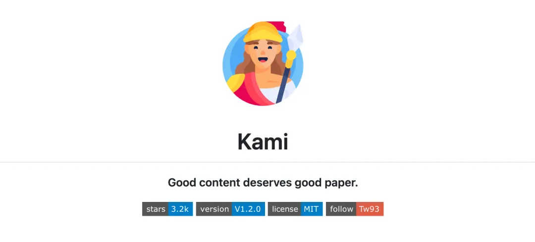 Kami 是 tw93 三个开源项目的其中之一。这三个项目分层负责不同的事情:Kaku(書く)负责写代码,Waza(技)培养开发习惯,Kami(紙)负责交付文档。