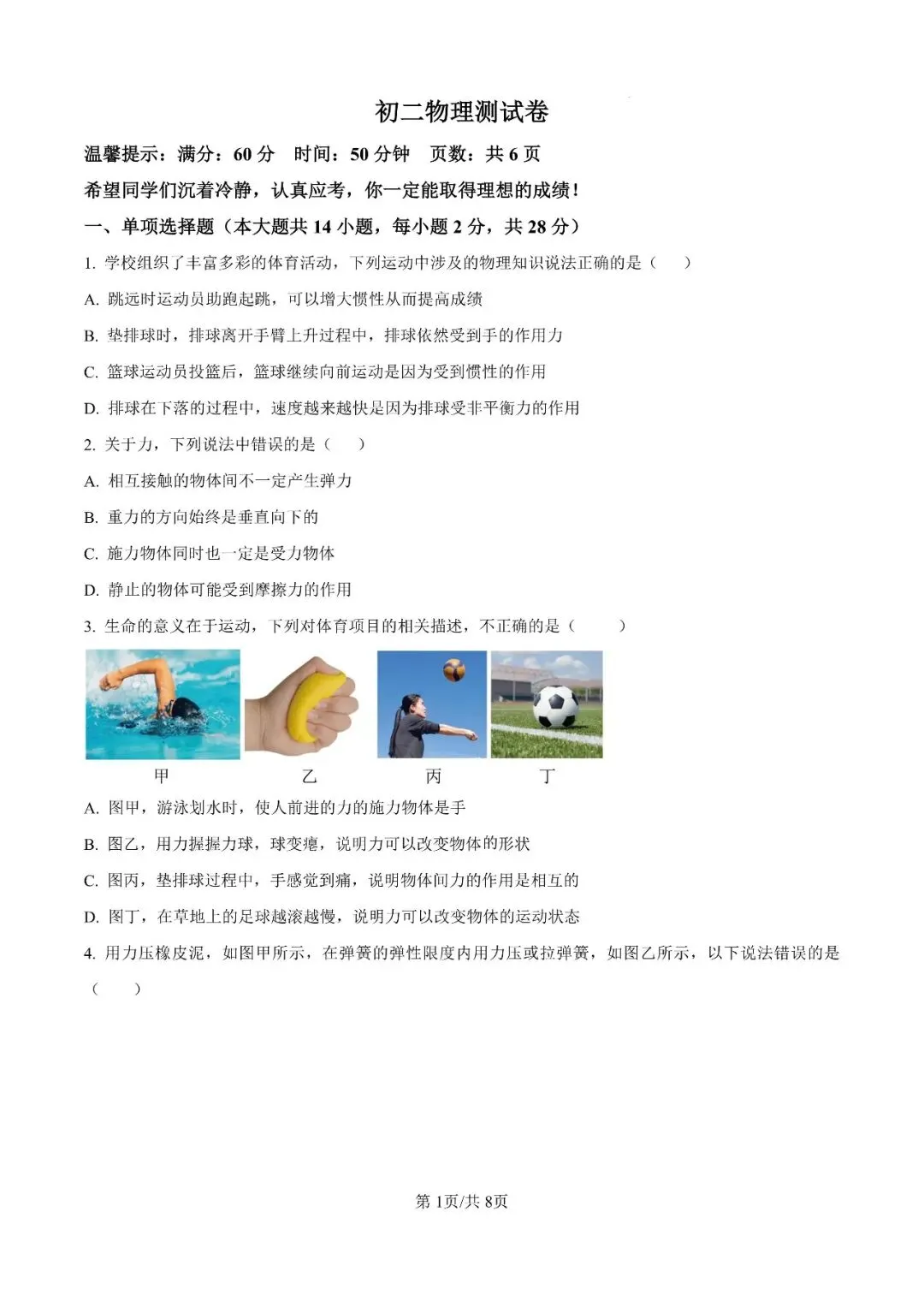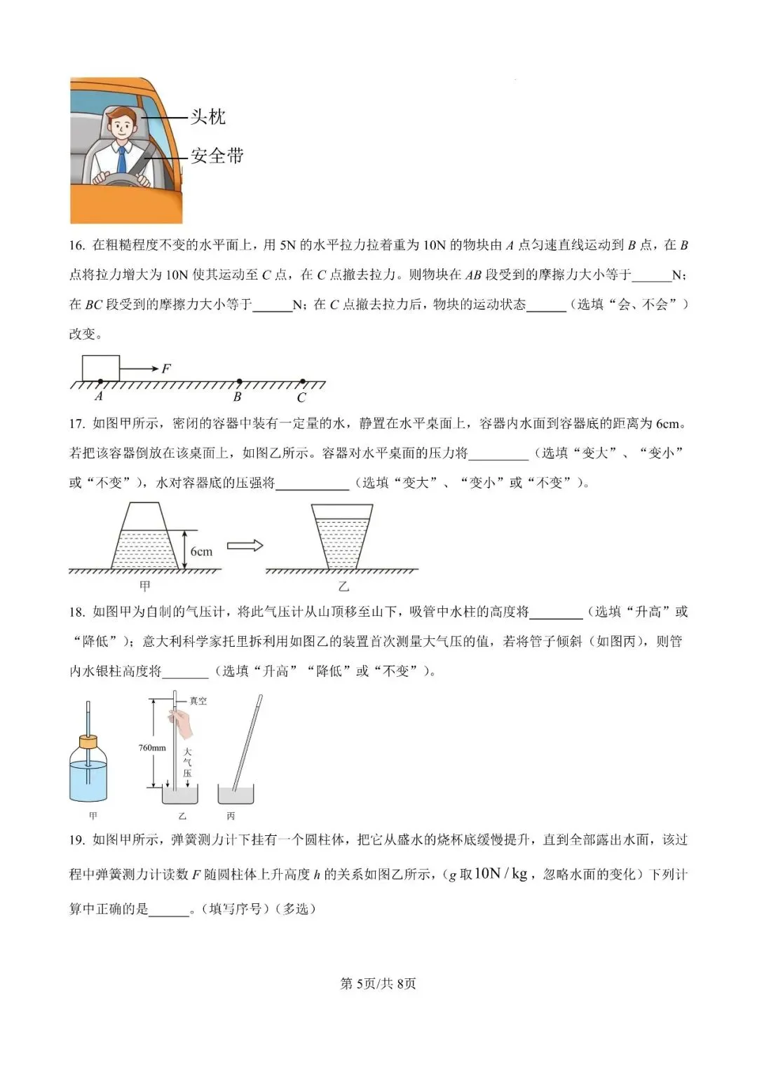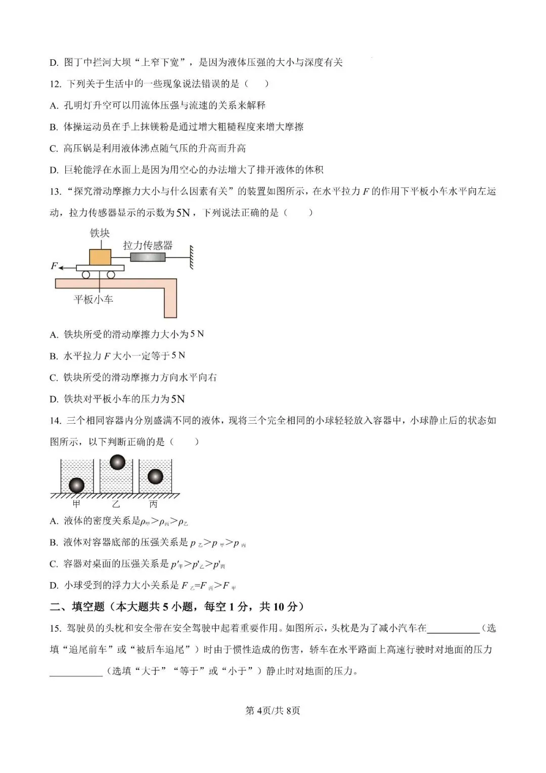 邯郸市23中学八下期中【物理】卷-可打印(有答案)