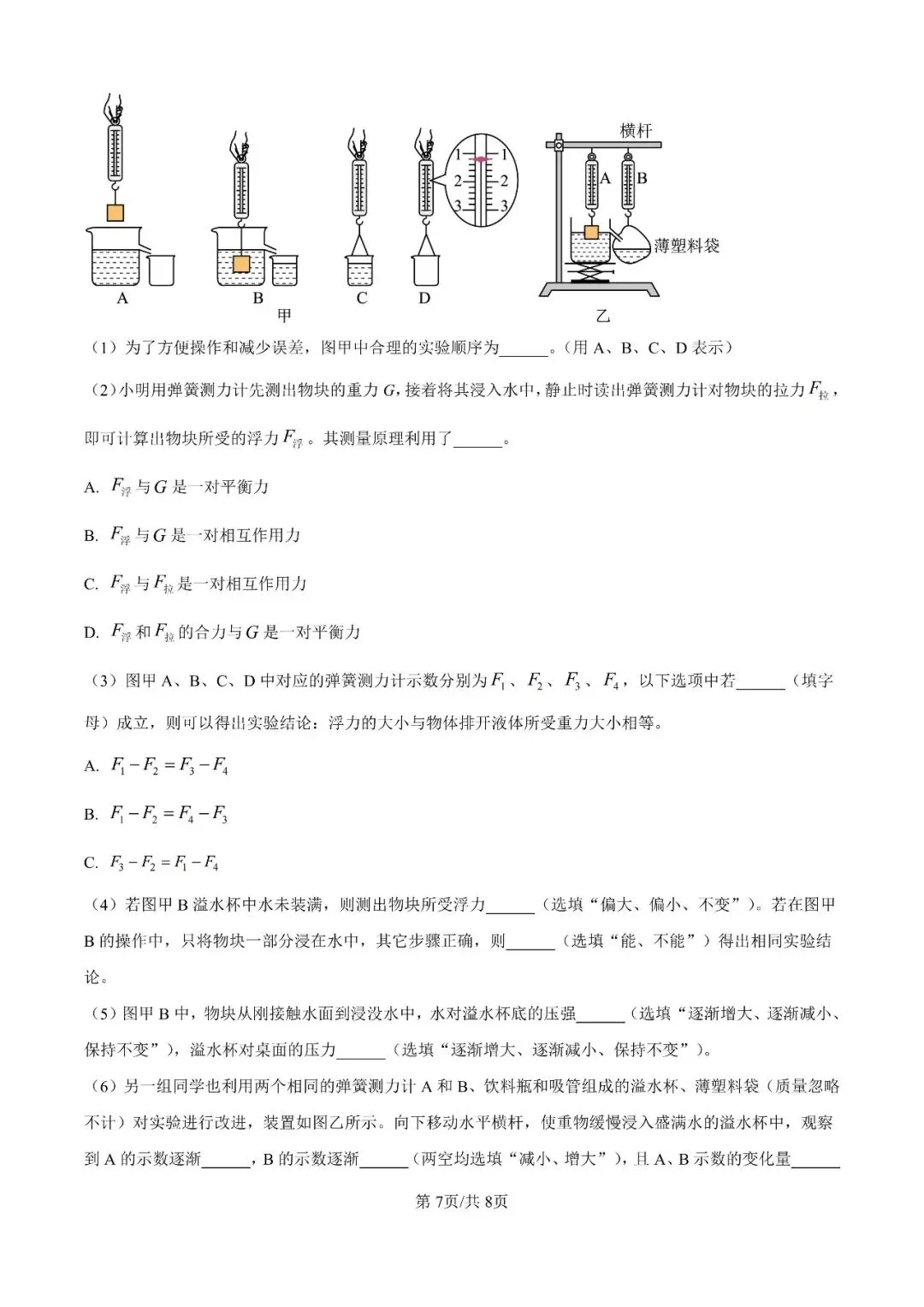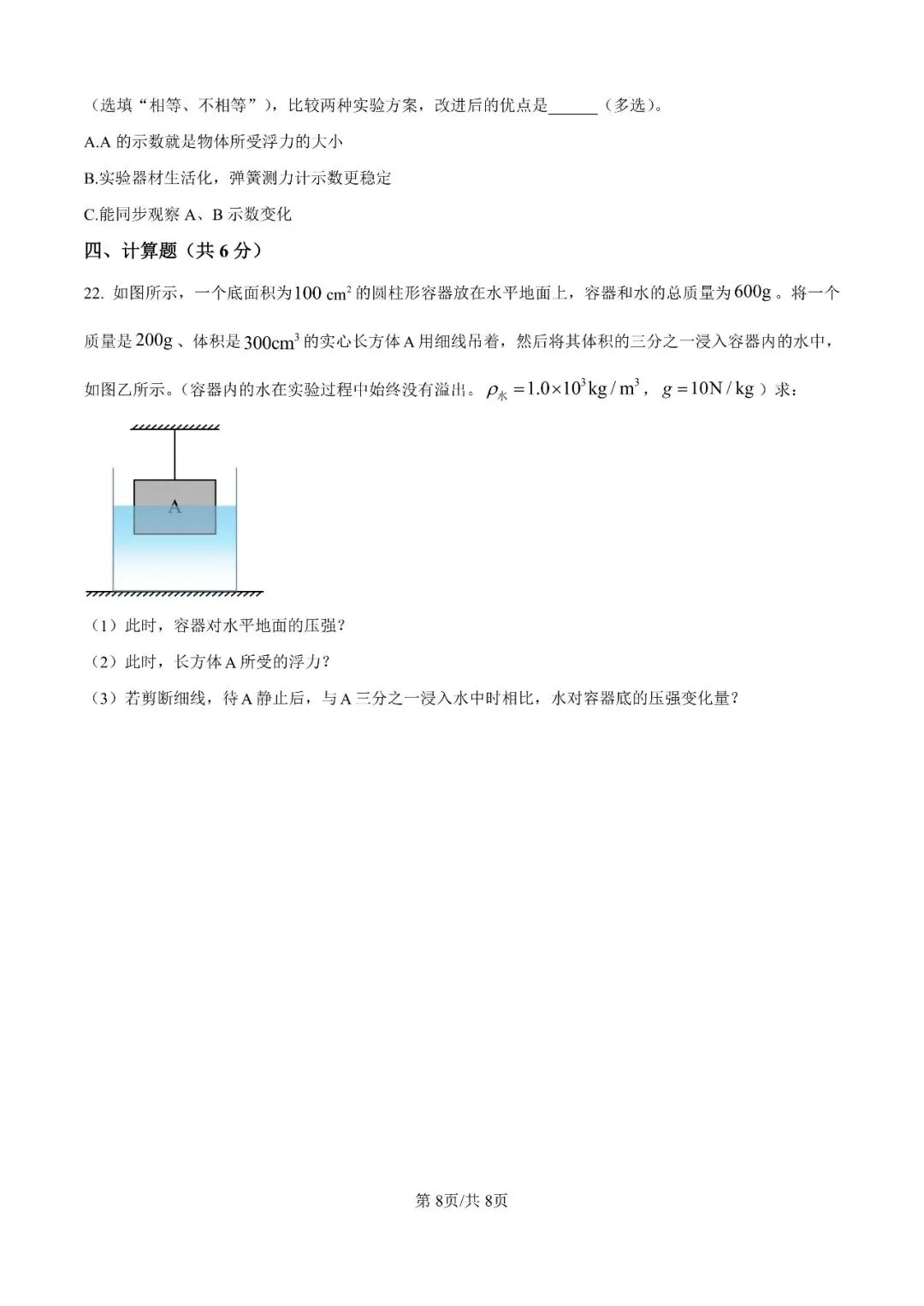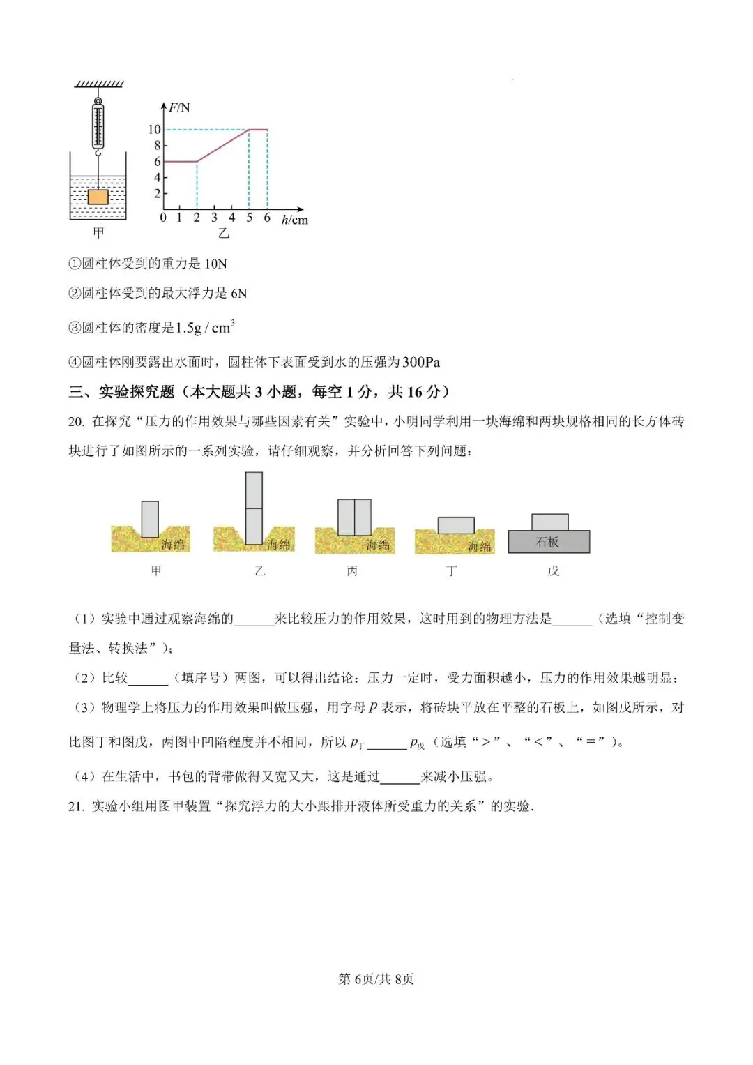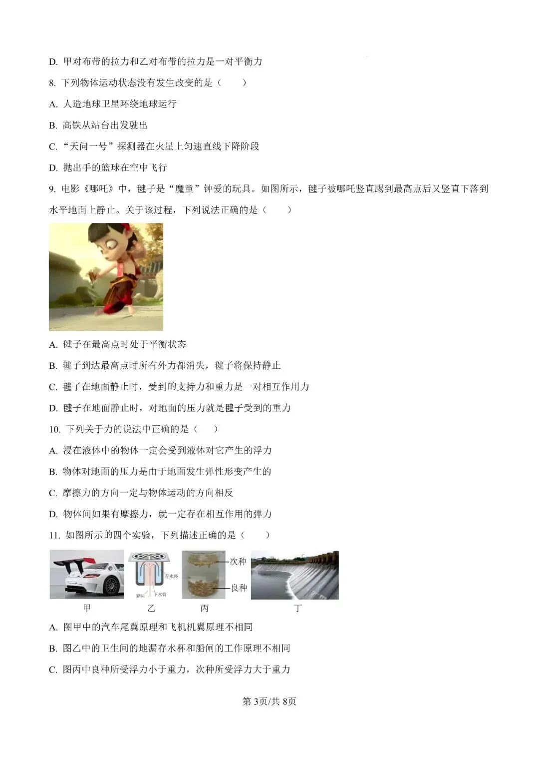 邯郸市23中学八下期中【物理】卷-可打印(有答案)