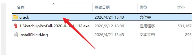 7.双击打开【SketchUp 2020】压缩包解压后的【SketchUp 2020】文件夹中的【crack】文件夹。