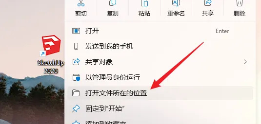 9.鼠标右击【SketchUp 2020】软件图标选择【打开文件所在的位置】。