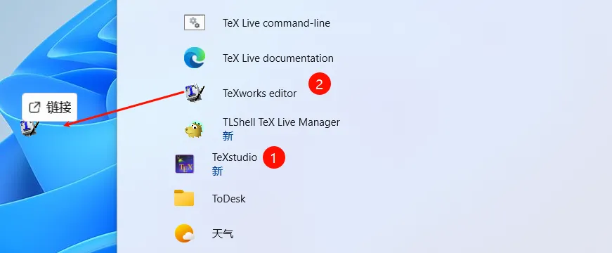 12.在开始菜单里面把这两个快捷键拖到桌面