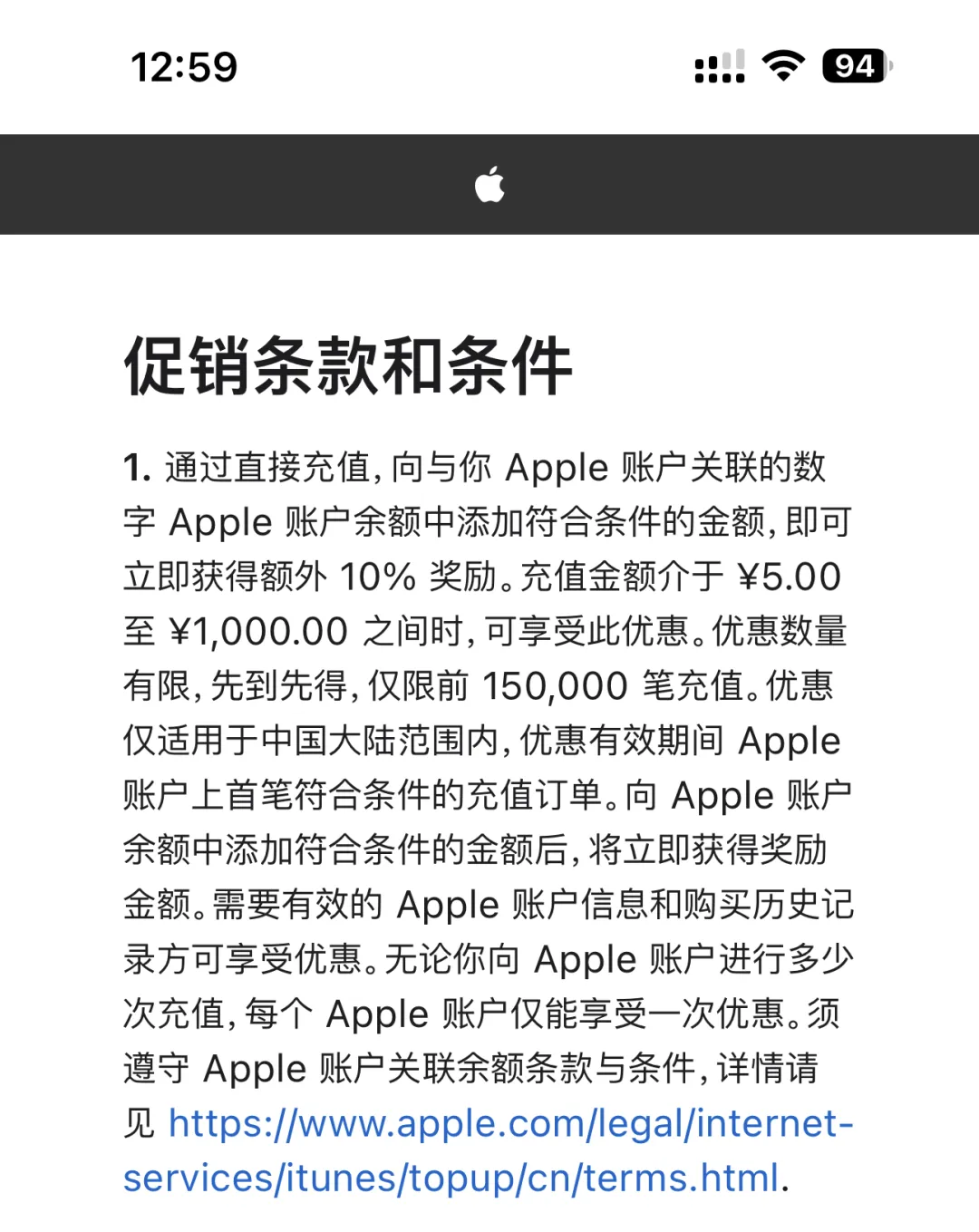 这应该是第二次充值 10% 加赠(上次在春节),无套路、直接送钱,刚需用户(iCloud 订阅、手游党、付费 App 用户)闭眼冲。