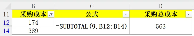 4. SUBTOTAL 筛选后求和,筛选被隐匿的数据不计算