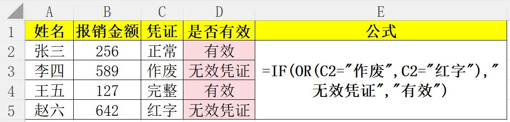 =IF(OR(C2="作废",C2="红字"),"无效凭证","有效")