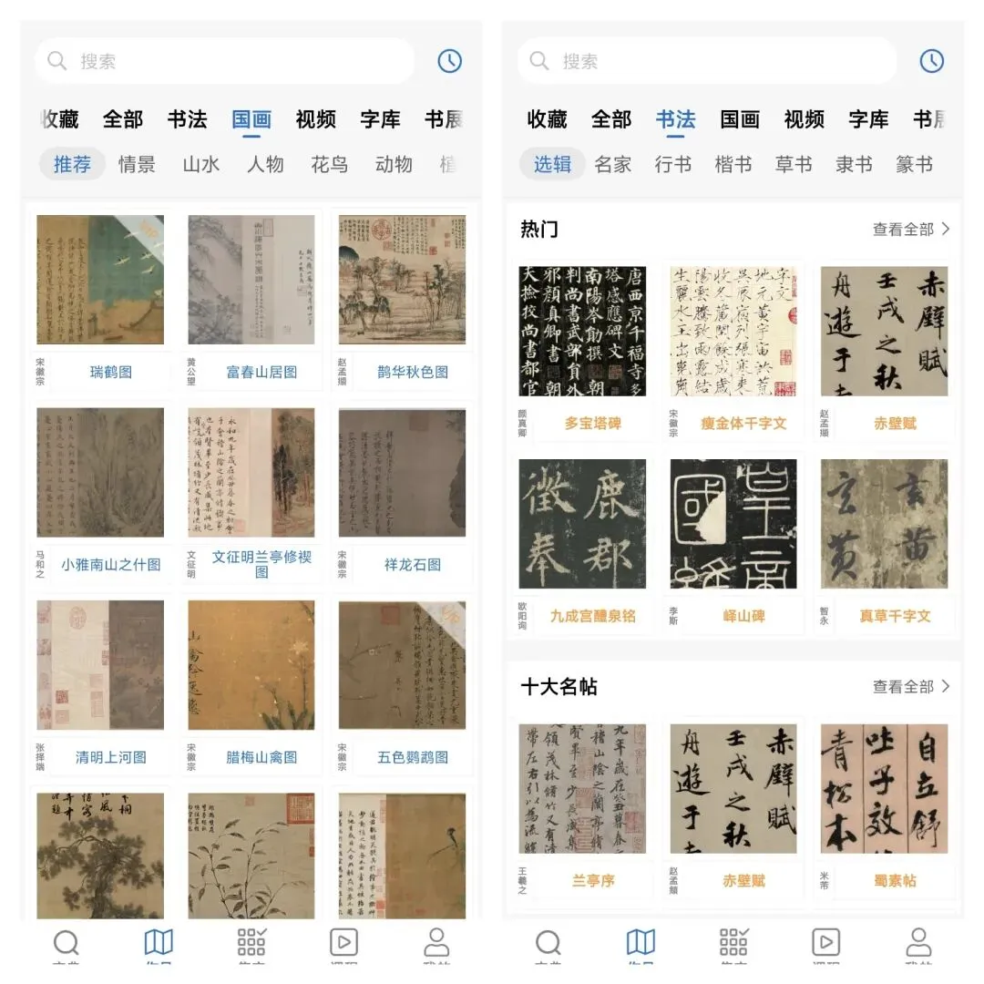 收录上千幅历代经典碑帖、传世书画作品,涵盖楷书、行书、草书、隶书、篆书全品类,高清原图支持离线下载、保存,无网络也能随时翻看、临摹,适合外出、通勤时学习。