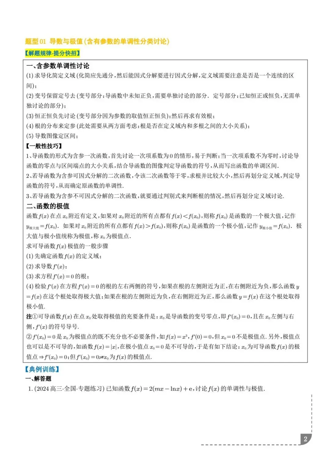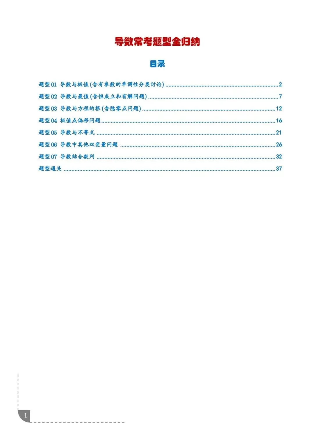 今天学长给分享的是 高中数学导数常考七大题型(含详细解析答案)分享给大家,高一到高三通用