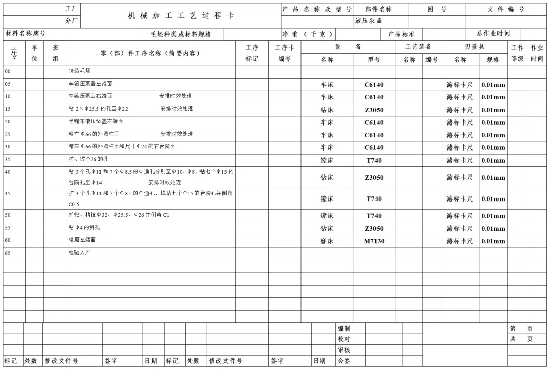 所有工序完成后,将工艺过程卡片整理归档,作为企业技术积累、生产调度、成本核算及新人培训的重要依据,形成完整的工艺文件闭环。