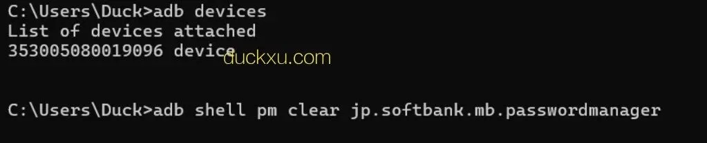 adb shell pm clear jp.softbank.mb.passwordmanager
