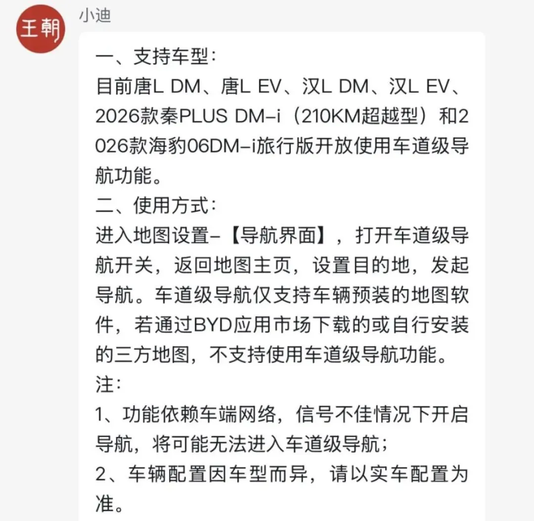 比亚迪车道级导航功能确实在逐步下放,秦PLUS、海豹06等车型有望搭载是一个积极信号。