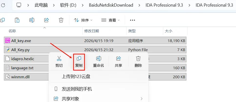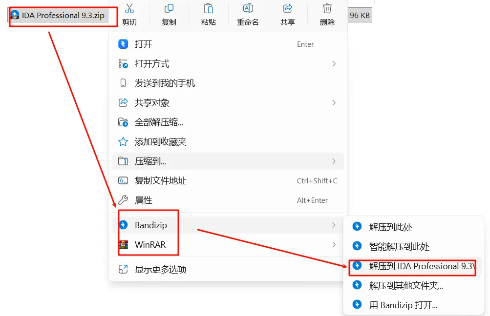 1.选中下载好的安装包,鼠标右键解压到“IDA9.3”文件夹