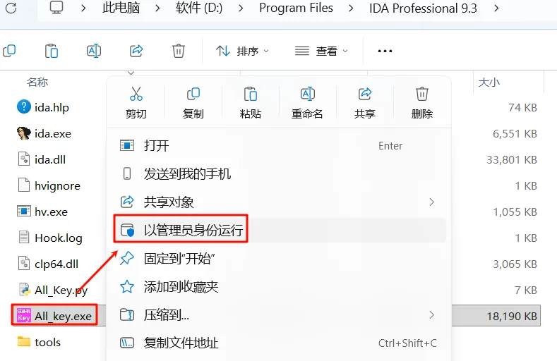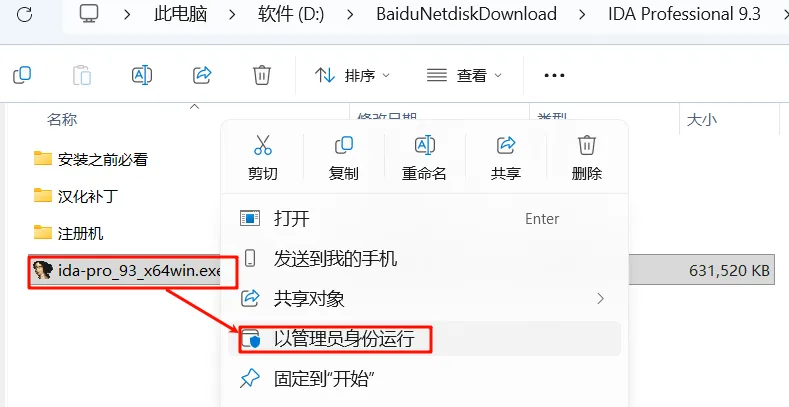 2.选中“ ida-pro_93_x64win.exe”右键以管理员身份运行