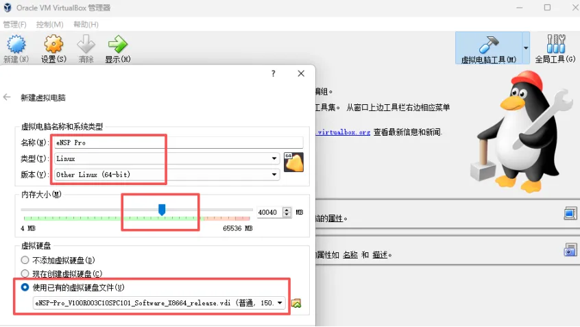 2)打开VBox,点击左上角新建,按照如下图进行配置,然后点击创建