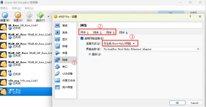 序号② 的网卡1、网卡2、网卡3都需要设置