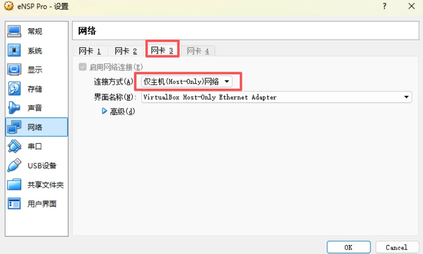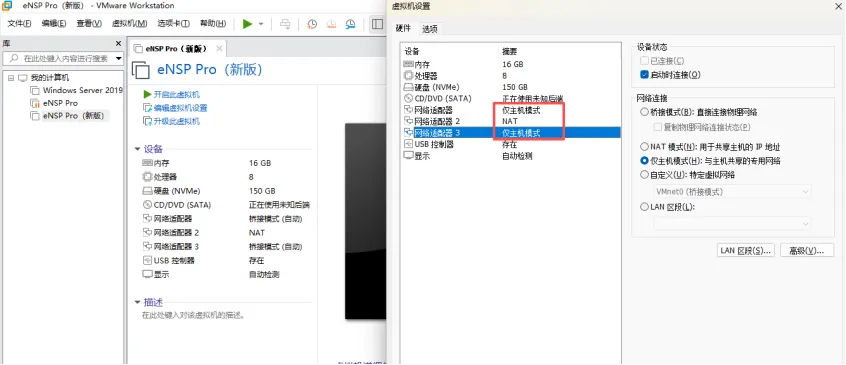 eNSP Pro的安装也不能很难,但是网络适配器需要设置合适,否则不出现ip地址