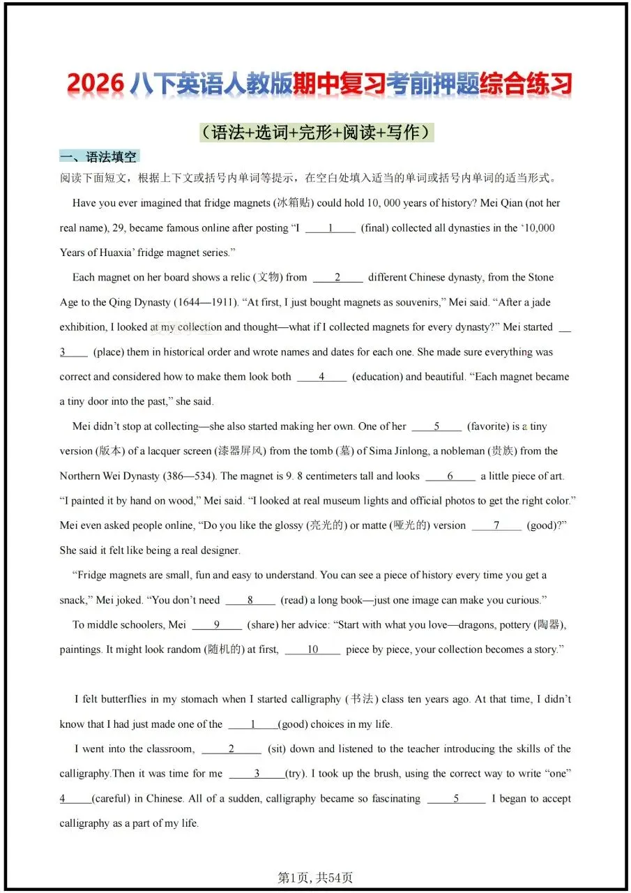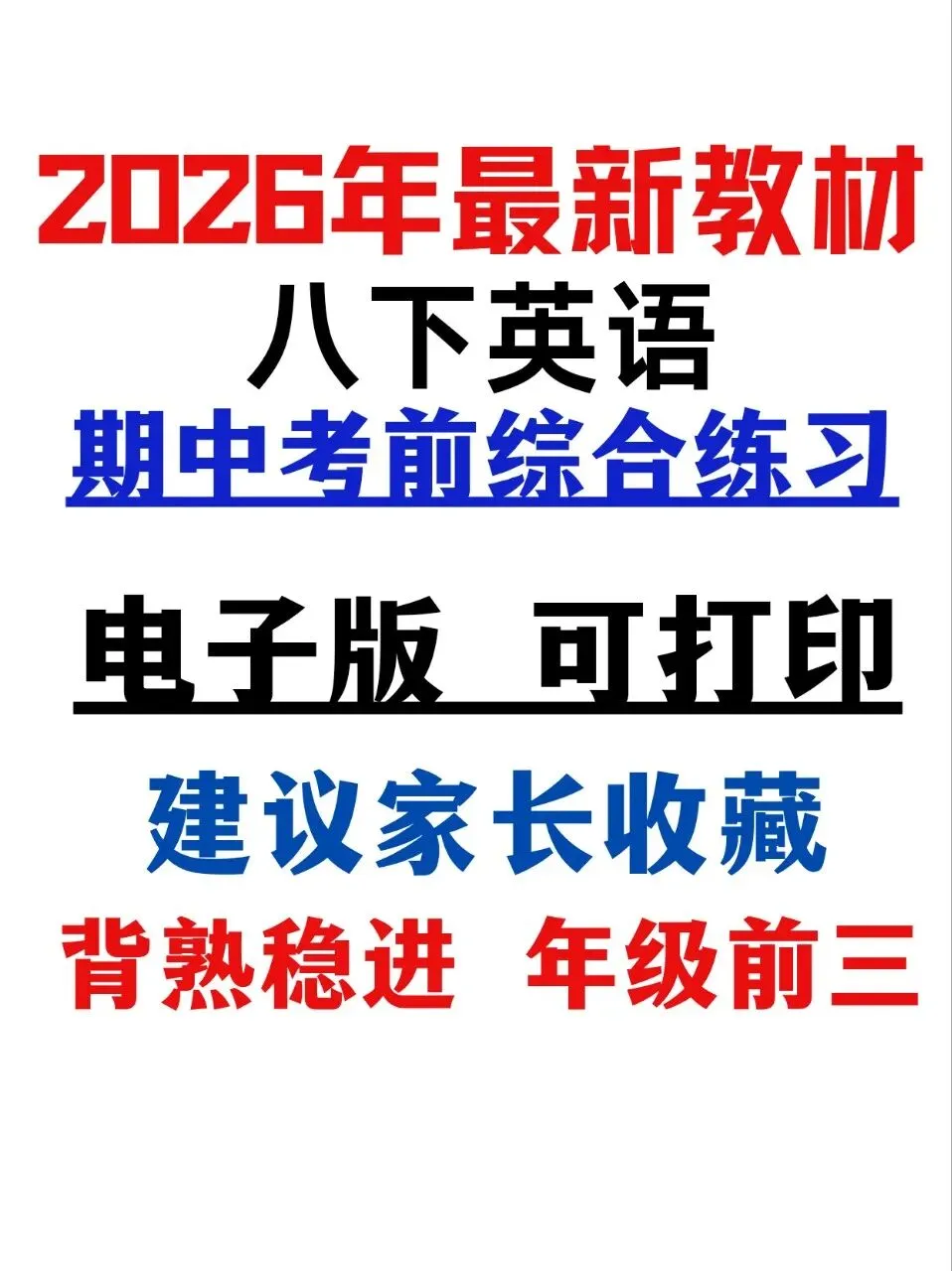 2026年最新版八年级下册英语期中考前综合练习,有完整电子版可打印,学霸学习好帮手,建议家长打印,学霸人手一份!点击蓝字关注我们!2026年最新版八年级下册英语期中考前综合练习,有完整电子版可打印,学霸学习好帮手,建议家长打印,学霸人手一份!