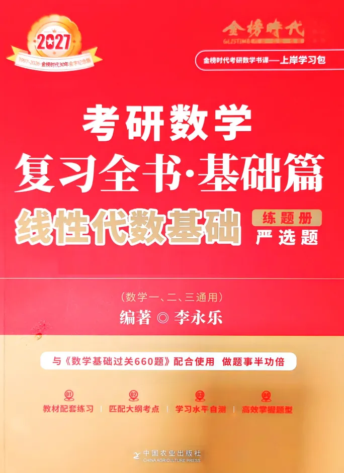 今日推荐:27李永乐《复习全书基础篇-线代学习册+严选题》