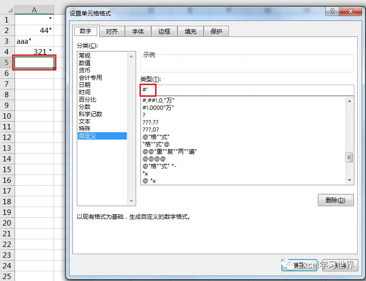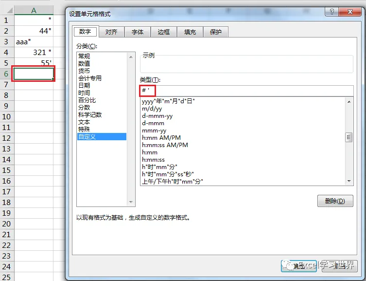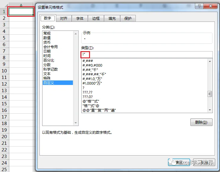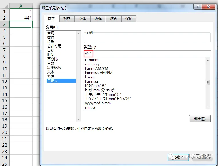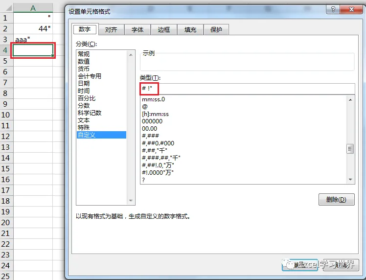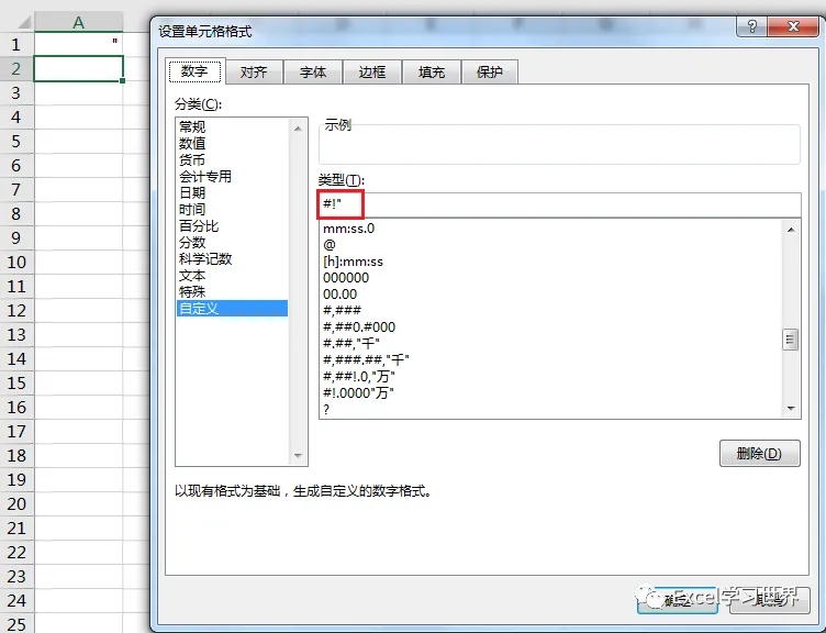 由于双引号是自定义格式中常用的符号,本身具有特殊用途和含义,如果要单独显示这个符号,就需要借助一下 !。