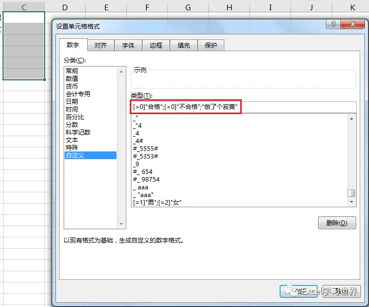 设置以下类型,在单元格内输入正数、负数和 0 后,会分别显示“合格”、“不合格”、“做了个寂寞”: