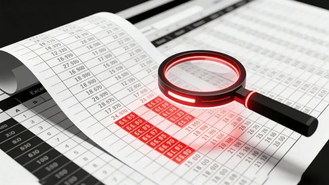 如果你的Excel技能还停留在“原始社会”,那你大概率会祭出最原始的招数:拿出一把直尺贴在屏幕上,或者用一根食指抵着显示器,眼睛瞪得像铜铃,一行一行地去玩“找茬”游戏。