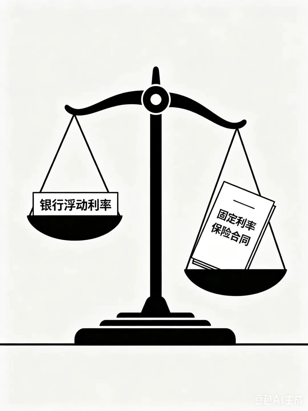 银行的利率是浮动的,今天1.85%,明天可能就1.5%,后天甚至更低。但保险合同里的利率,是写进条款里的,不管未来市场怎么降,它都不会变。