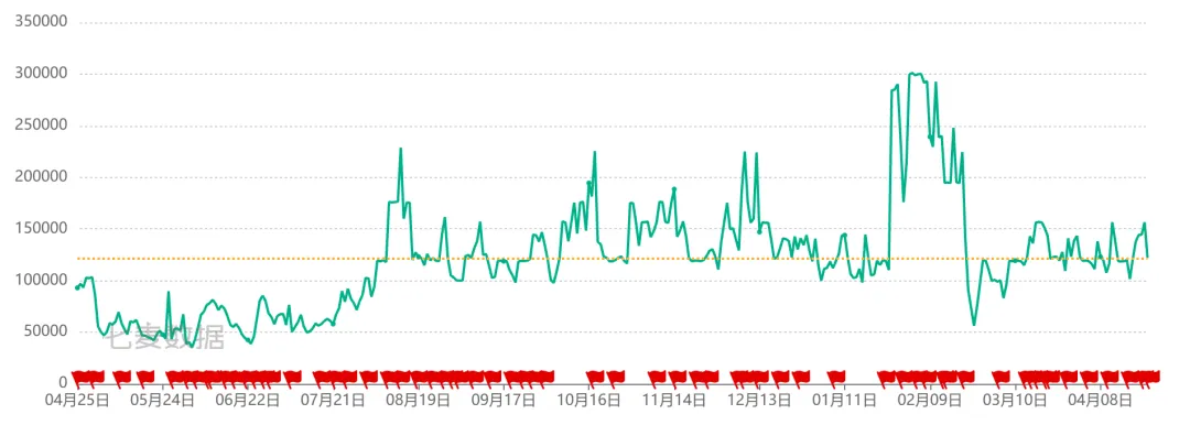 近一年在IOS的预估下载量累计 44,248,456,下载分布如下: