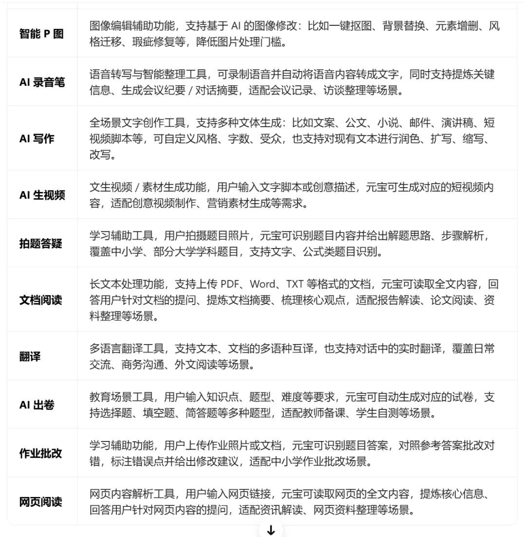 腾讯元宝的使用场景覆盖办公、学习、内容创作、日常生活及专业领域等多个维度。
