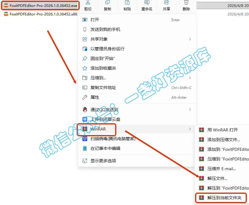 1.右键下载的安装包,选择【解压到当前文件夹】