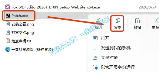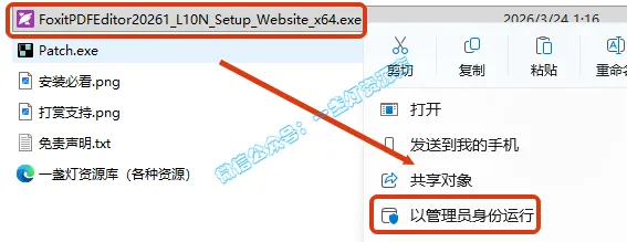 2.打开解压的文件夹,右键【FoxitPDFEditor20261_L10N_Setup_Website_x64.exe】,选择【以管理员身份运行】