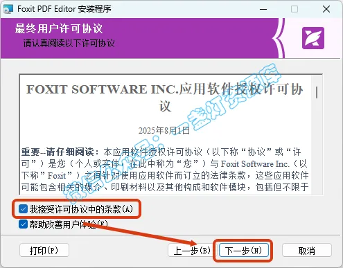 4.勾选【我接受许可协议中的条款】,点击【下一步】